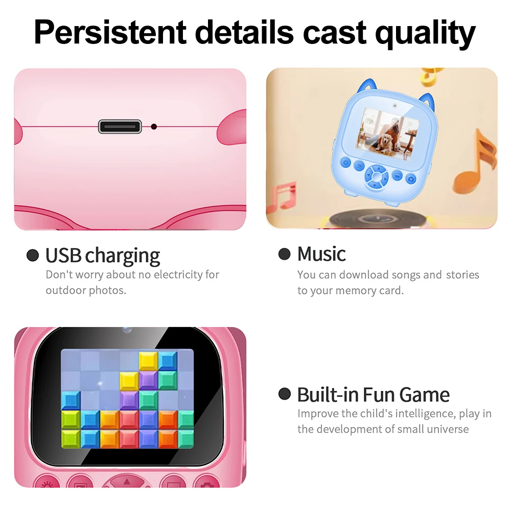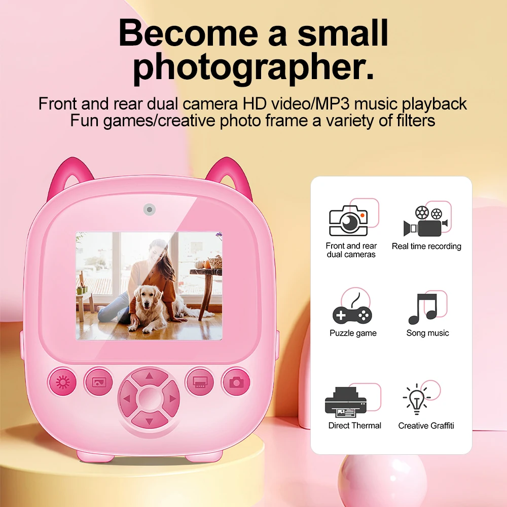 Cette caméra d’impression pour enfants S5 est le cadeau parfait, apportant une satisfaction immédiate et un plaisir créatif à votre enfant ! La caméra dispose d’une impression thermique instantanée, permettant aux enfants d’imprimer des photos en papier noir et blanc en seulement 1 seconde après avoir appuyé sur le déclencheur, rendant le plaisir tangible et immédiat.