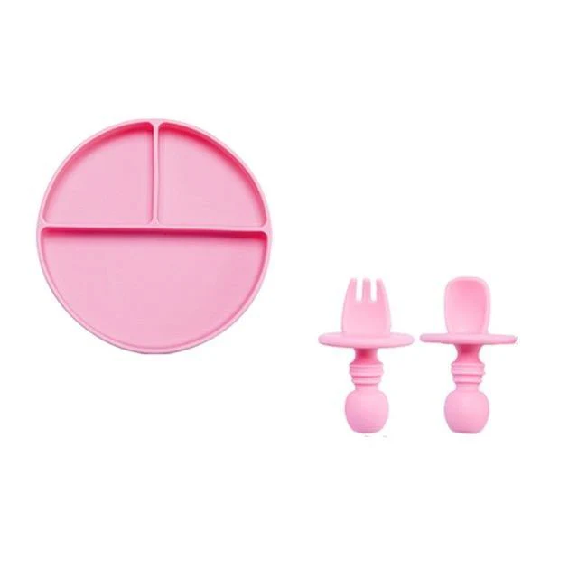 1X Set d’assiette en silicone pour bébés (une assiette en silicone, une cuillère et une fourchette)