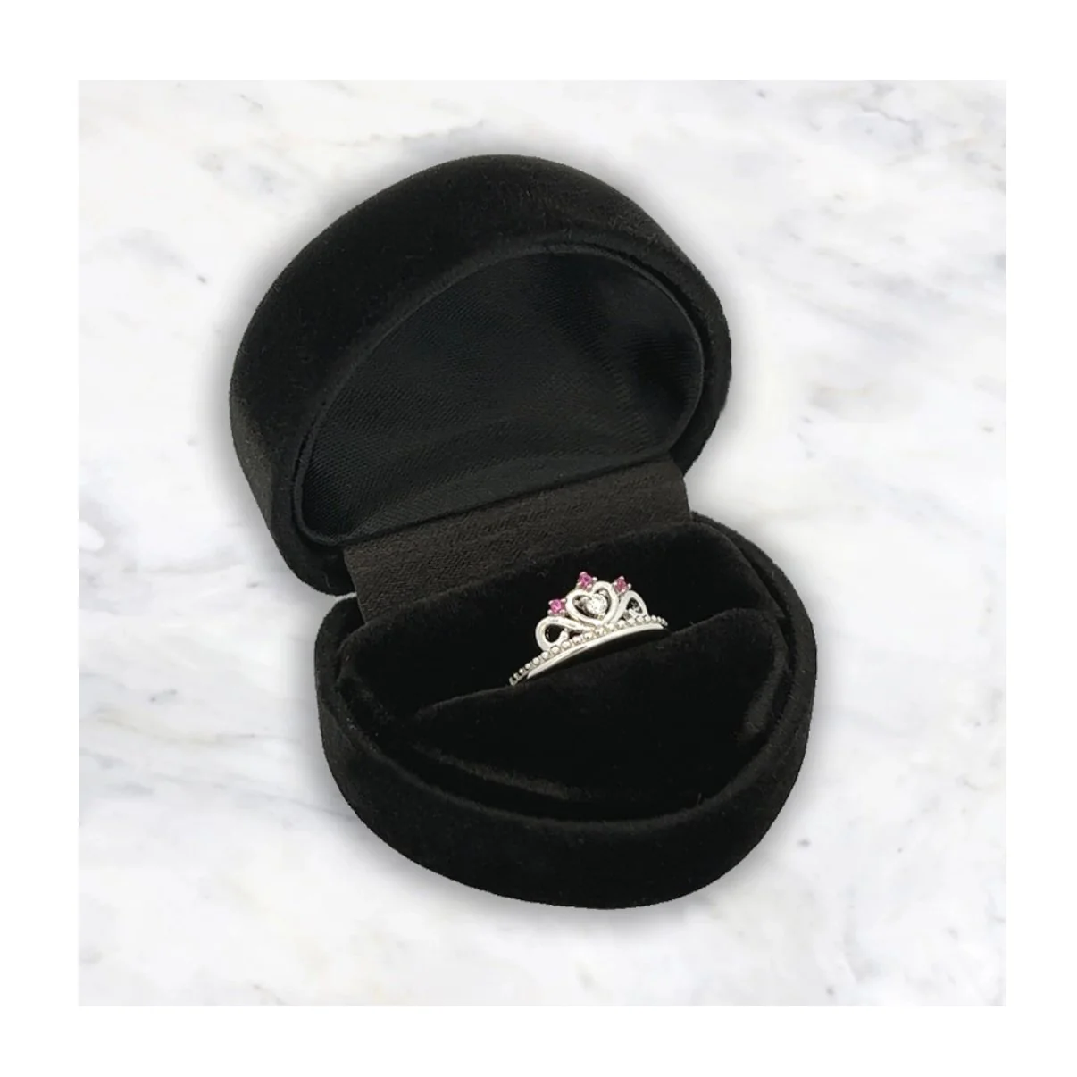 Bague bébé en argent sterling avec diadème de princesse rehaussé de zircons roses. C’est une bague parfaite pour votre petite princesse ! Ces bagues de haute qualité sont plaquées rhodium pour éviter le ternissement. Cette bague pour enfant est livrée dans une belle boîte en velours noir en forme de cœur.