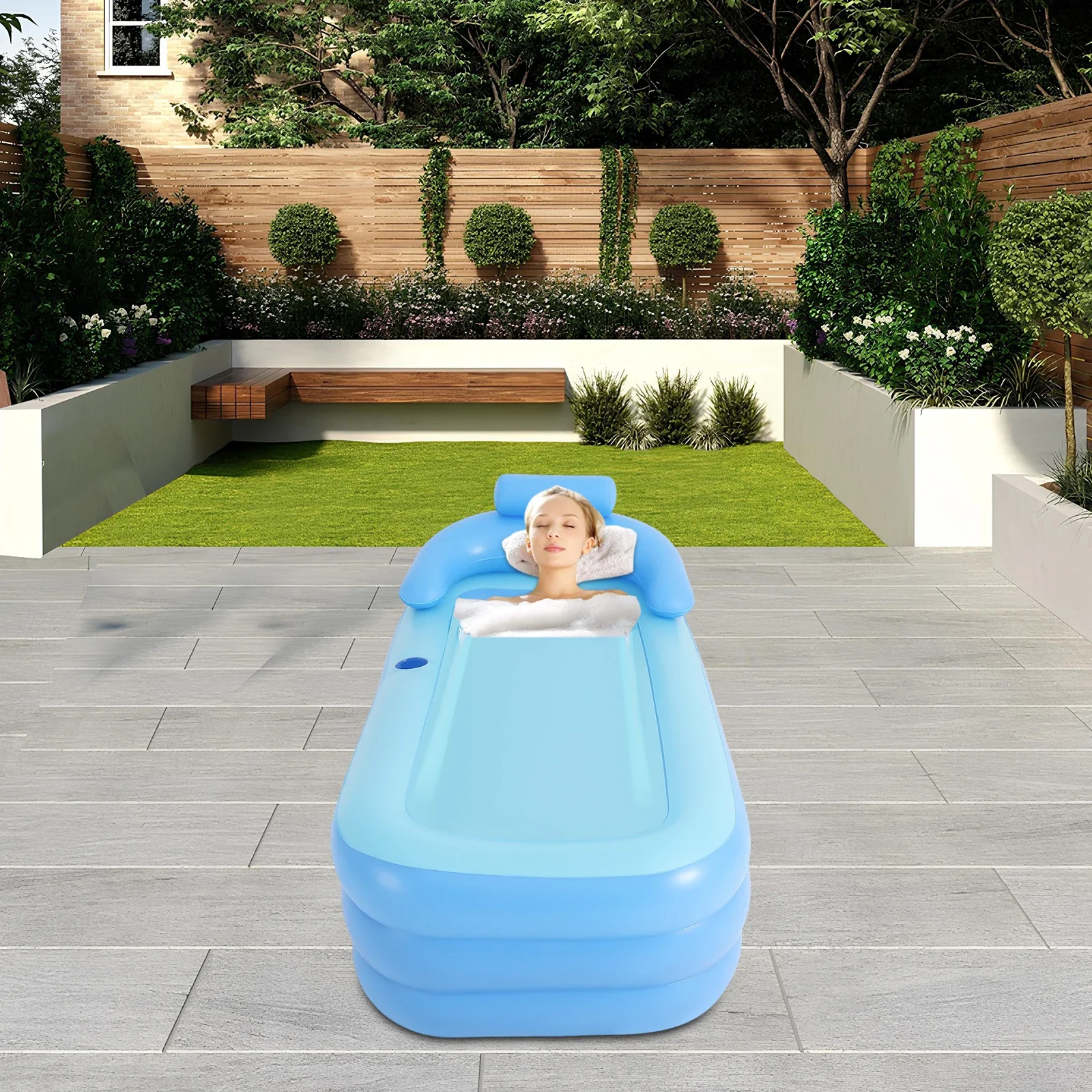 Facile à utiliser et à ranger : La baignoire est prête à l’emploi une fois gonflée, rendant le bain facile et rapide. Lorsqu’elle n’est pas utilisée, vous pouvez la plier la plier dans une taille compacte (environ $35 times 30 times 13 text{ cm}$) et la ranger dans un placard.