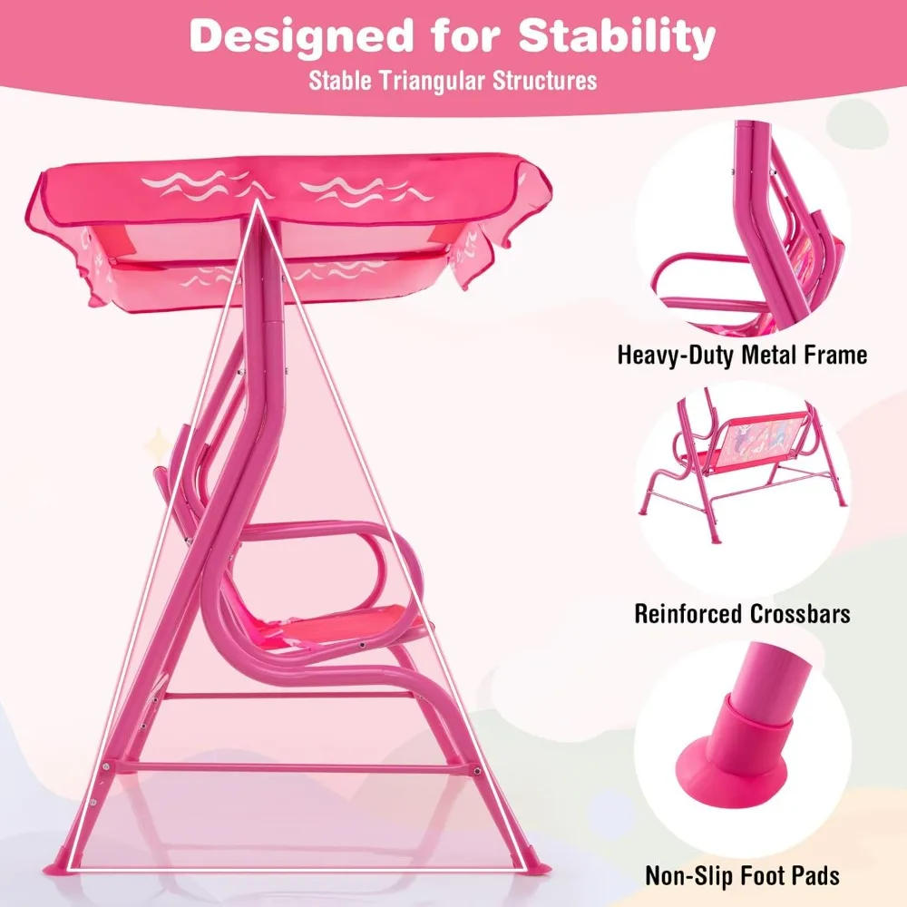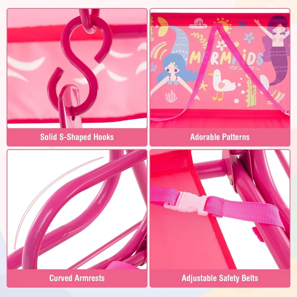 La sécurité est notre priorité absolue. Cette balancelle 2 places est équipée de crochets sécurisés en S, de ceintures de sécurité réglables et est conforme aux normes de sécurité ASTM et CPSIA, garantissant une expérience de balancement sûre et sans souci pour les enfants de 3 ans et plus.