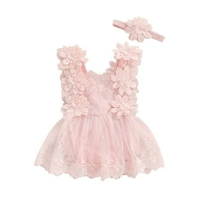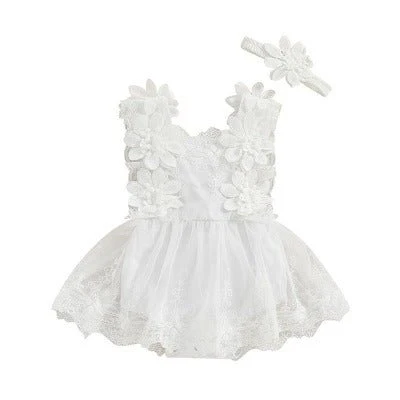 Le col carré et le tutu à volants combinés avec un bandeau floral ajoutent une touche de charme et d’élégance à cette tenue adorable.