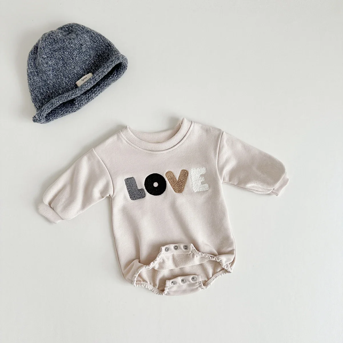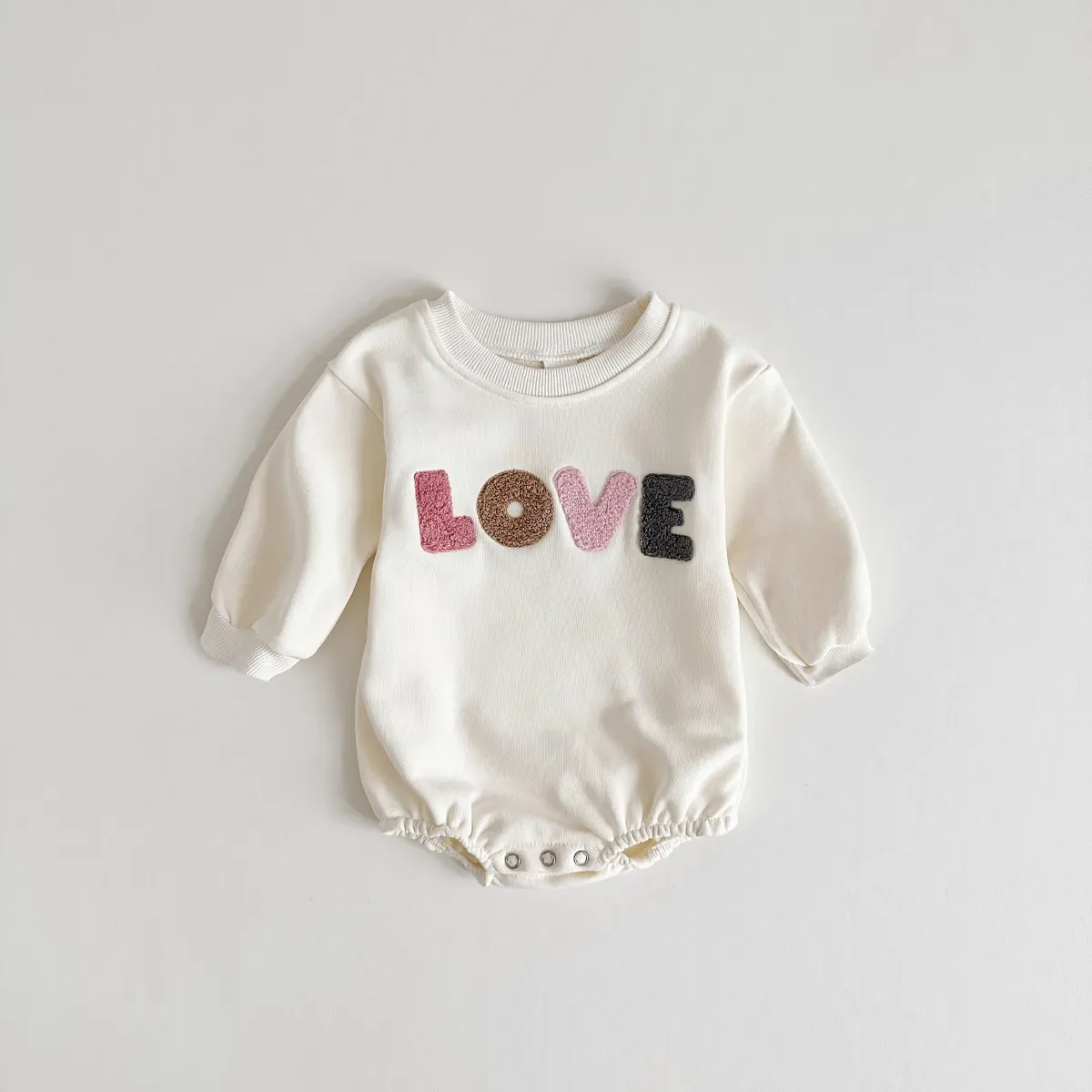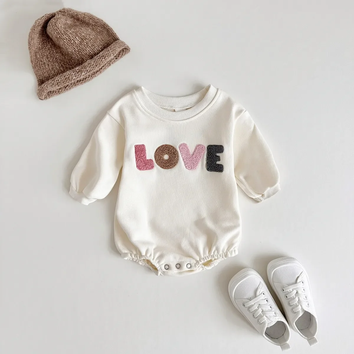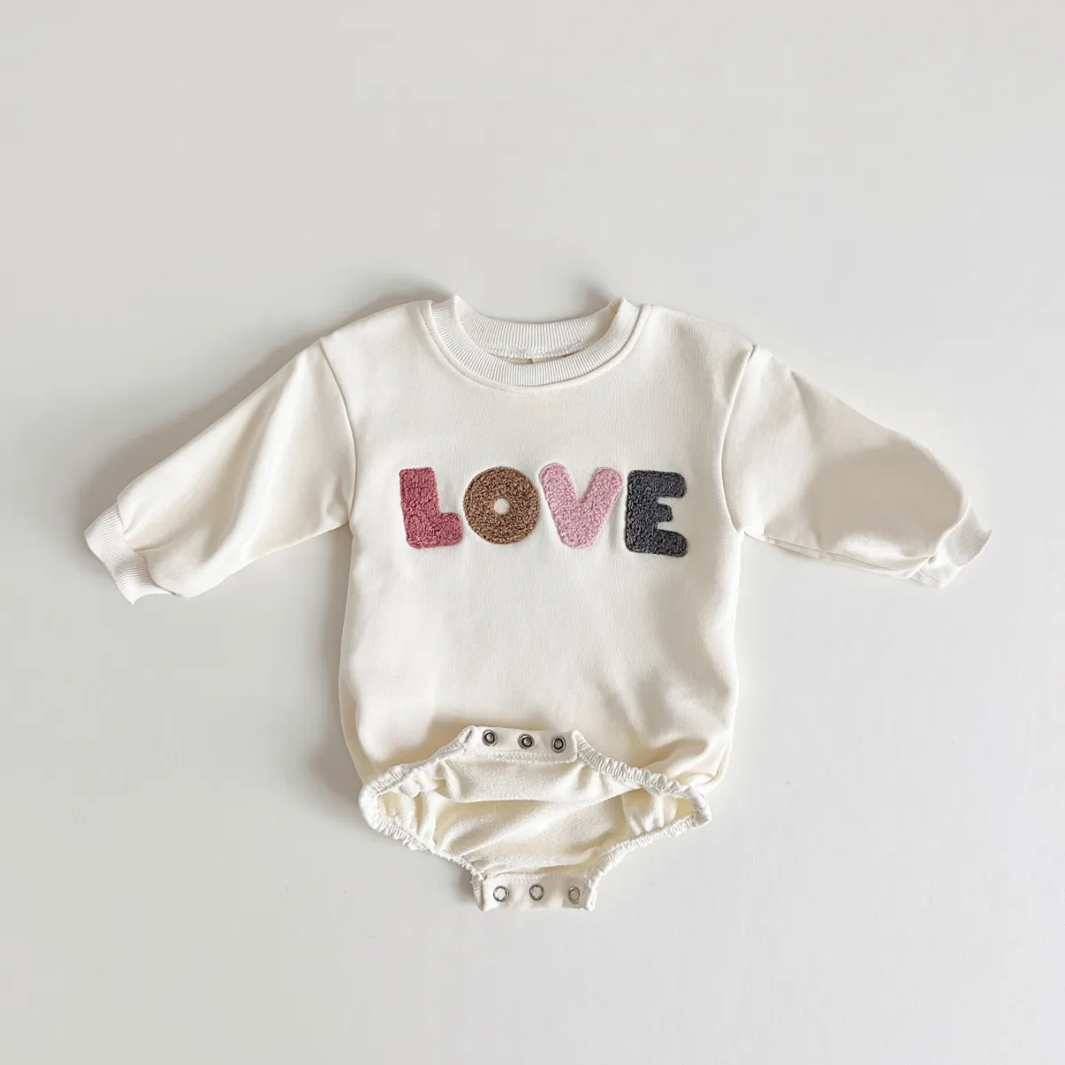 Découvrez notre barboteuse brodée LOVE – Couleur crème pour bébés