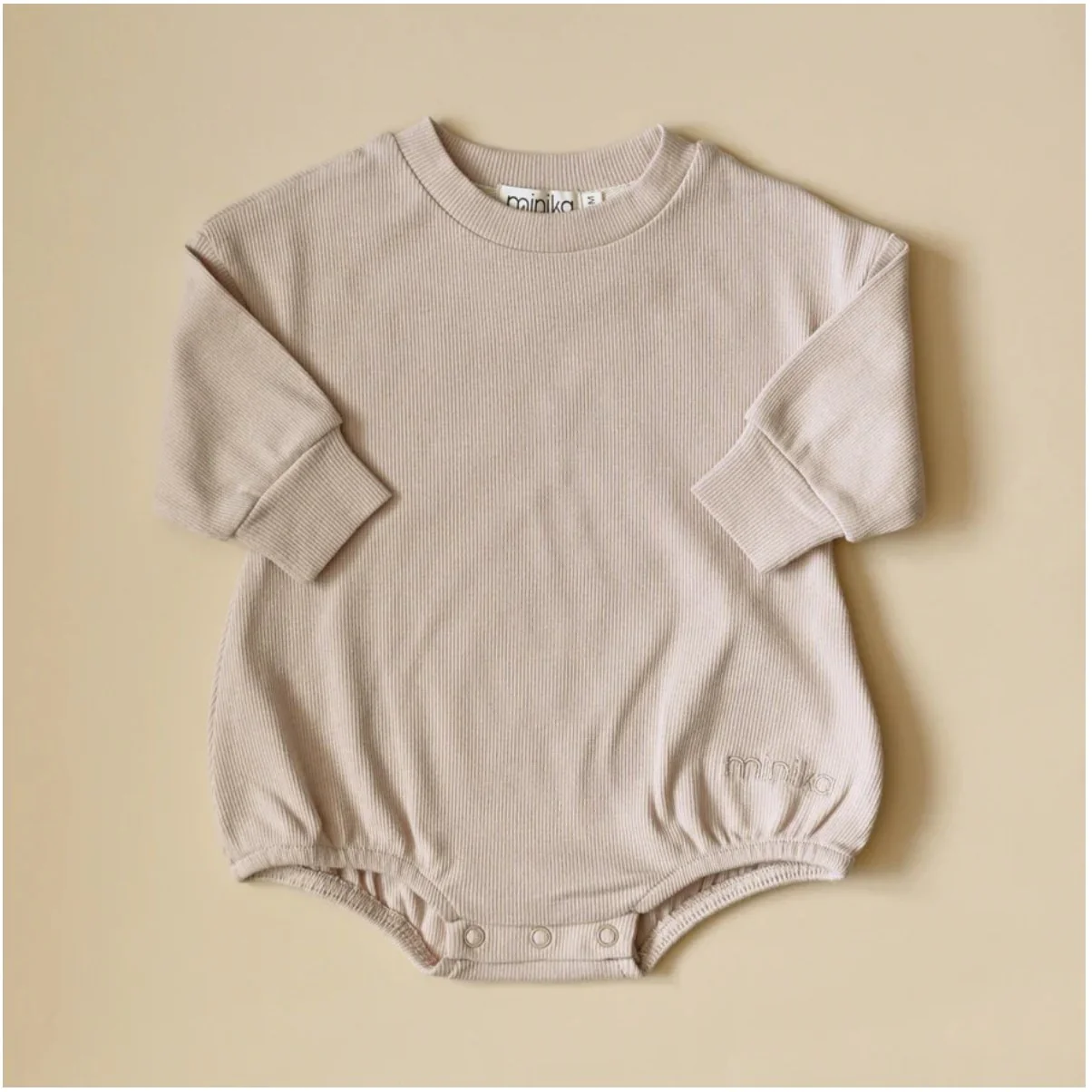 Barboteuse bulle côtelé. 95% coton biologique, 5% spandex. Laver à la machine à l’eau froide avec des couleurs similaires. Ne pas mettre à la sécheuse. Ne pas nettoyer à sec. Tenir éloigné du feu. Conçu au Québec, éthiquement fabriqué en Chine.
