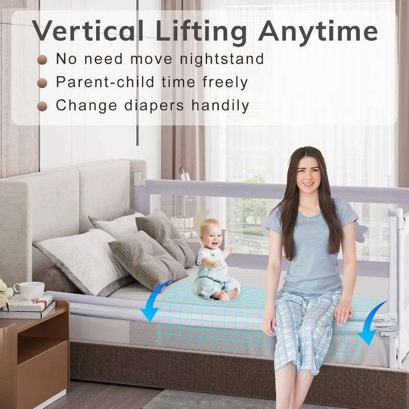 Barrière de lit pour tout-petits – (Lot de 3) Barrières de lit réglables pour tout-petits avec double sécurité enfant, garde-corps réglable en hauteur pour lit king size