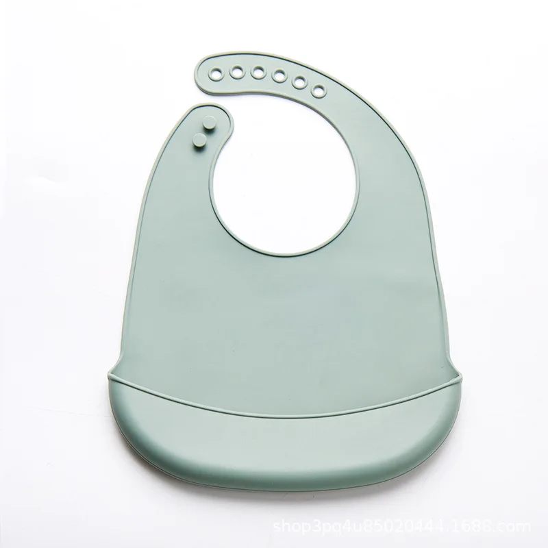 Bavoir en silicone de couleur unie avec boutons-pression réglables