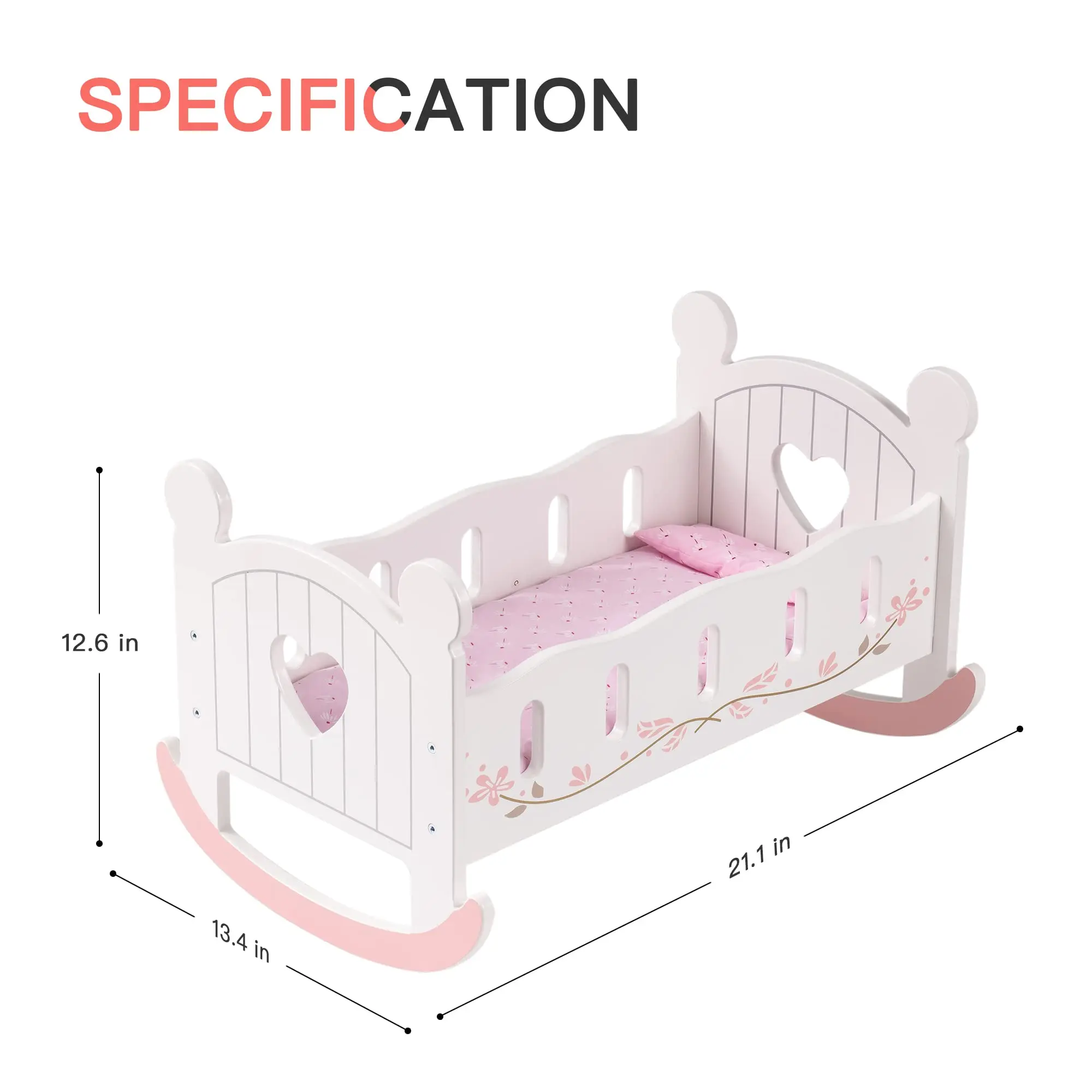 Nourrissez les compétences de soin et l’imagination ! Cliquez sur ‘Ajouter au panier’ maintenant pour obtenir ce magnifique berceau à bascule en bois pour poupée !