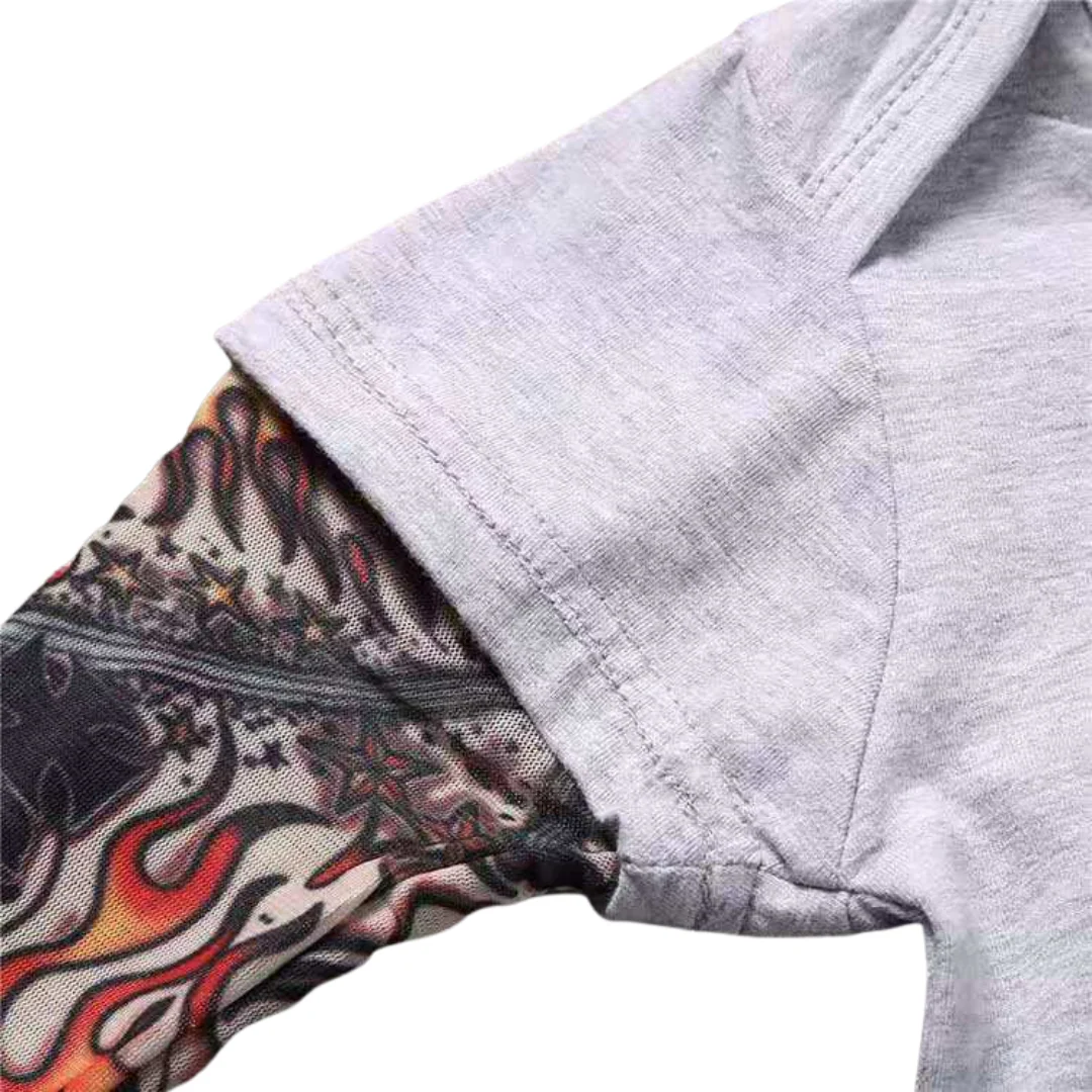 - Manches imprimées façon tatouage.