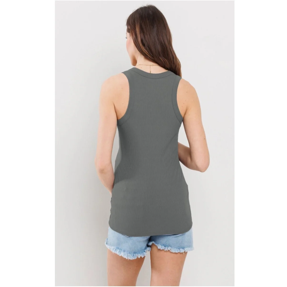 Débardeur en tricot côtelé de maternité sans manches à encolure dégagée et col rond.