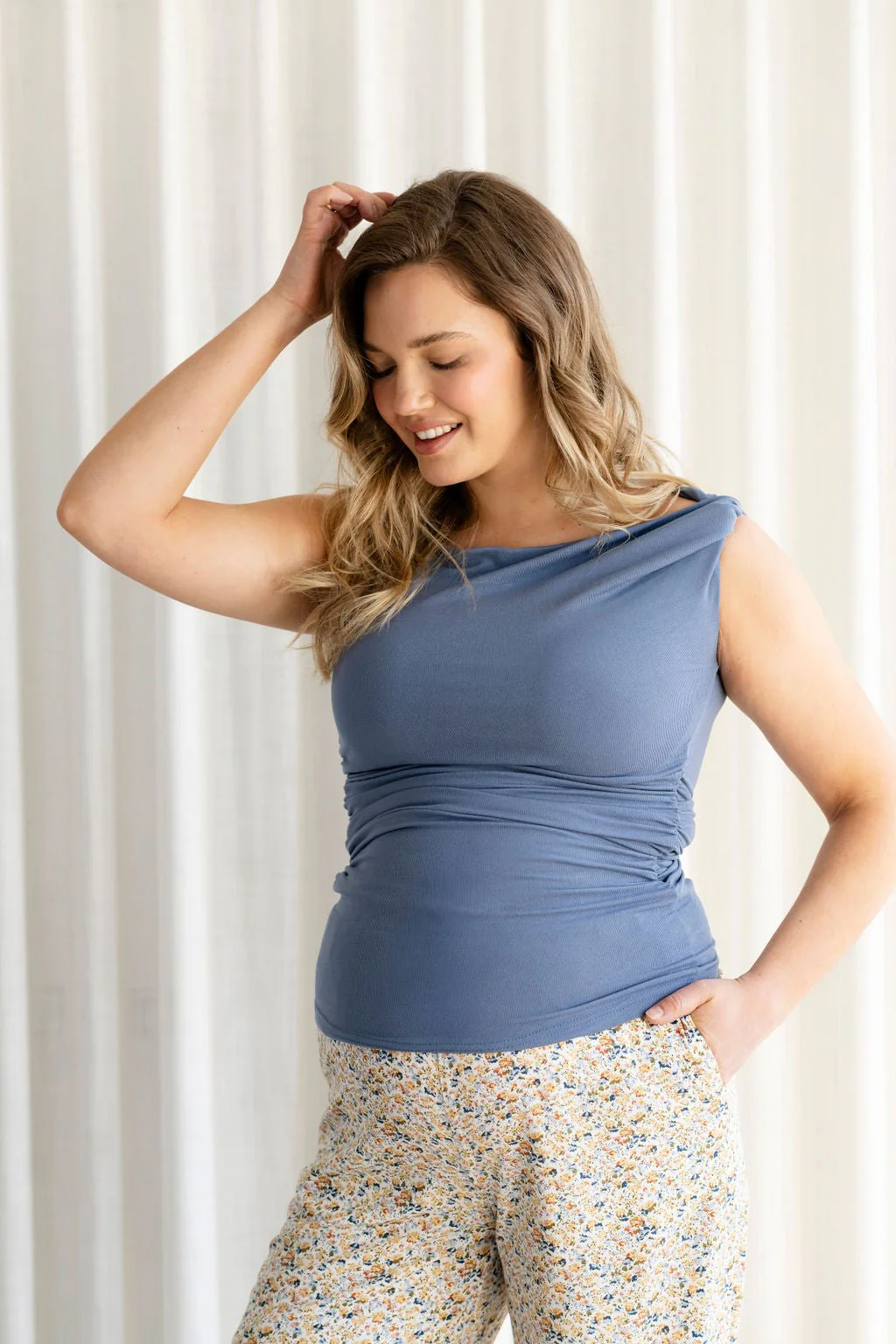 La camisole Sasha est une pièce élégante et flatteuse, conçue pour s’adapter à toutes les silhouettes, que vous soyez enceinte ou non. Son détail distinctif réside dans sa bretelle torsadée à l’épaule, apportant une touche raffinée et originale.