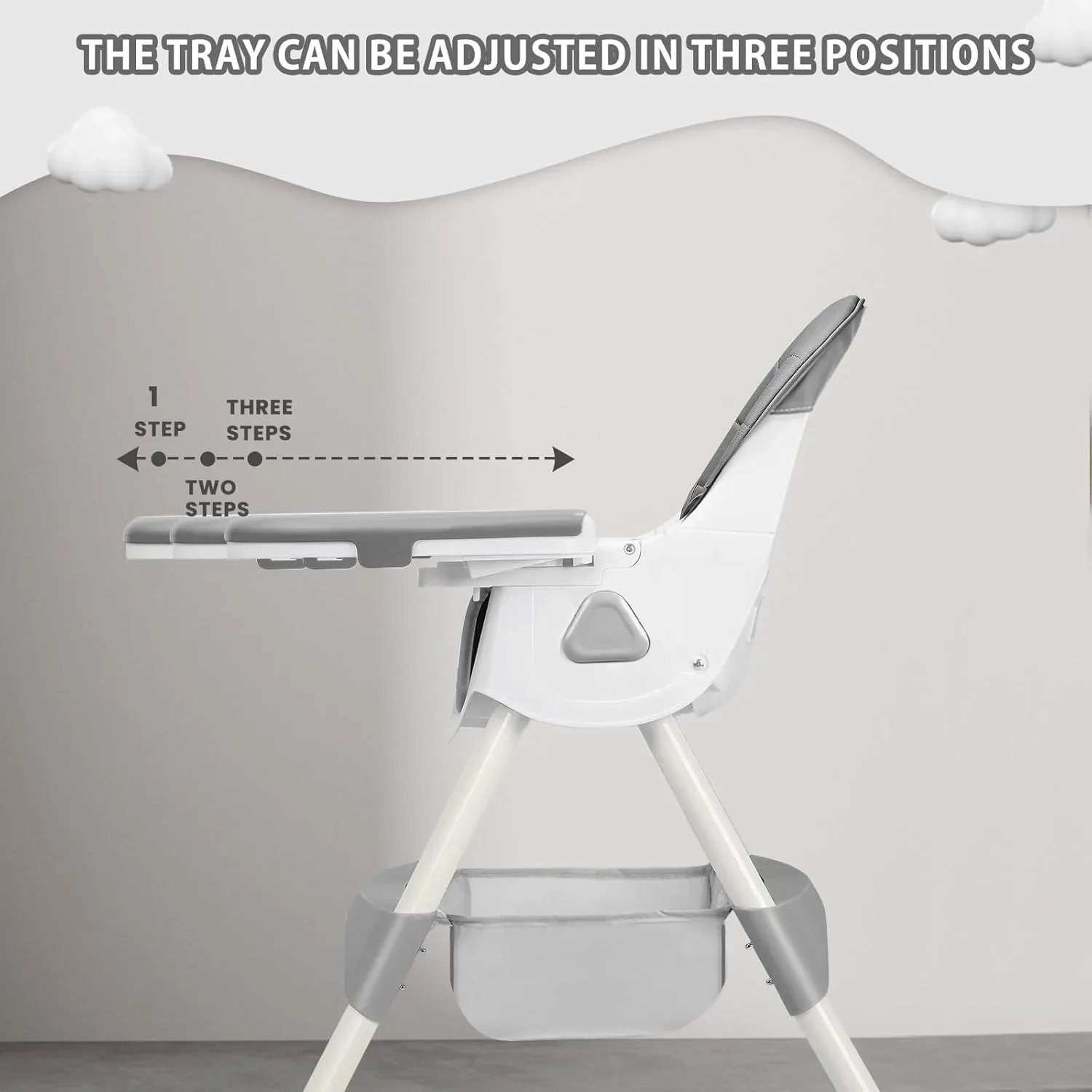 Plateau double couche ajustable et détachable : Inclut un plaque double couche. Vous pouvez facilement retirer la plaque supérieure pour le nettoyage après avoir mangé, tandis que la couche inférieure offre un espace propre pour jouer avec des jouets. Le plateau offre trois positions ajustables pour s’adapter aux enfants qui grandissent rapidement.