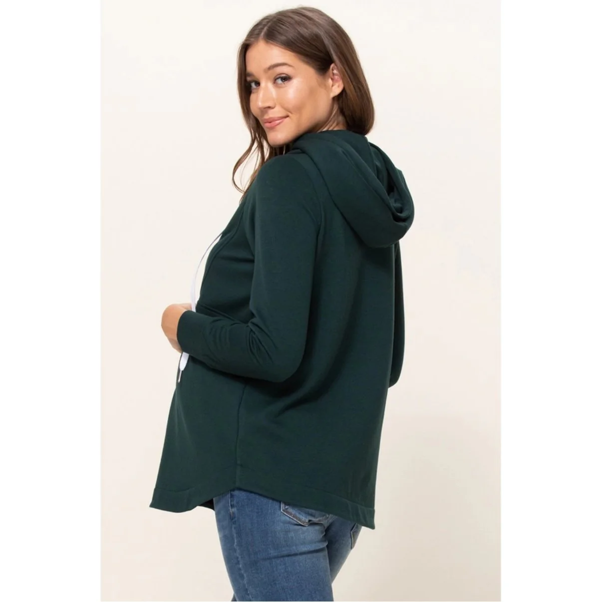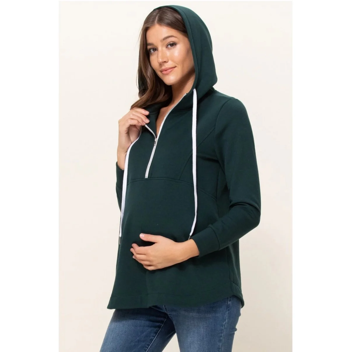 Beau chandail avec capuchon permettant l’allaitement avec la fermeture éclair à l’avant. Haut ample pour être vraiment confortable en plus d’être confectionné dans un tissu très doux!