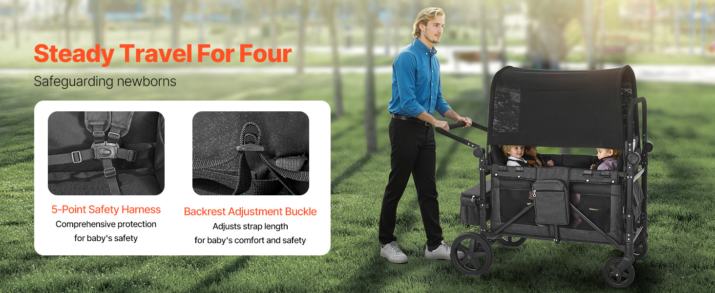 Capacité quad poussette : Conçu comme un espace spacieux Chariot poussette 4 places, idéal pour les familles ayant plusieurs jeunes enfants ou pour les accompagnateurs gérant des groupes de garde.