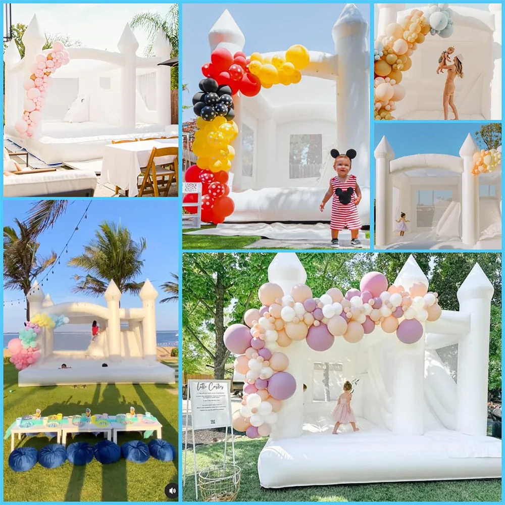 Ce magnifique château gonflable blanc et grand est un gonflable professionnel de qualité commerciale, parfait pour rendre n’importe quelle fête inoubliable. Fabriqué en PVC robuste, il est sûr, durable et offre un décor magnifique et polyvalent pour les mariages, anniversaires, vacances et grands rassemblements.