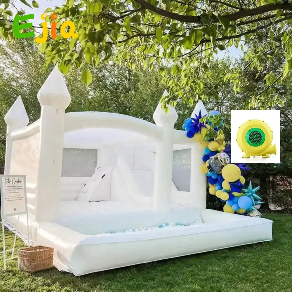 1 x Grand château gonflable blanc en PVC avec toboggan/piscine à balles
