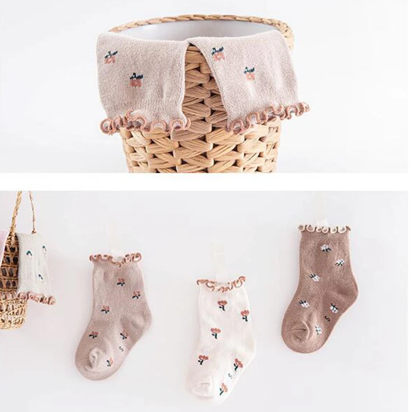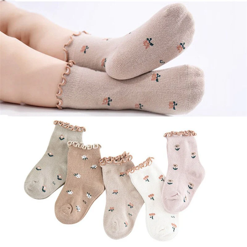 Chaussette de cheville à motif floral vintage pour enfants