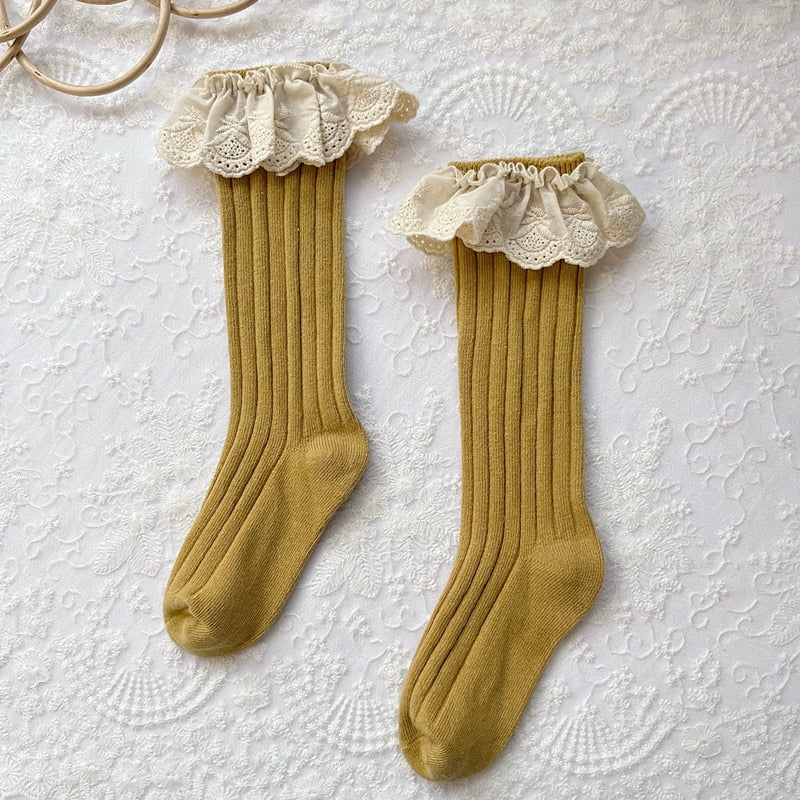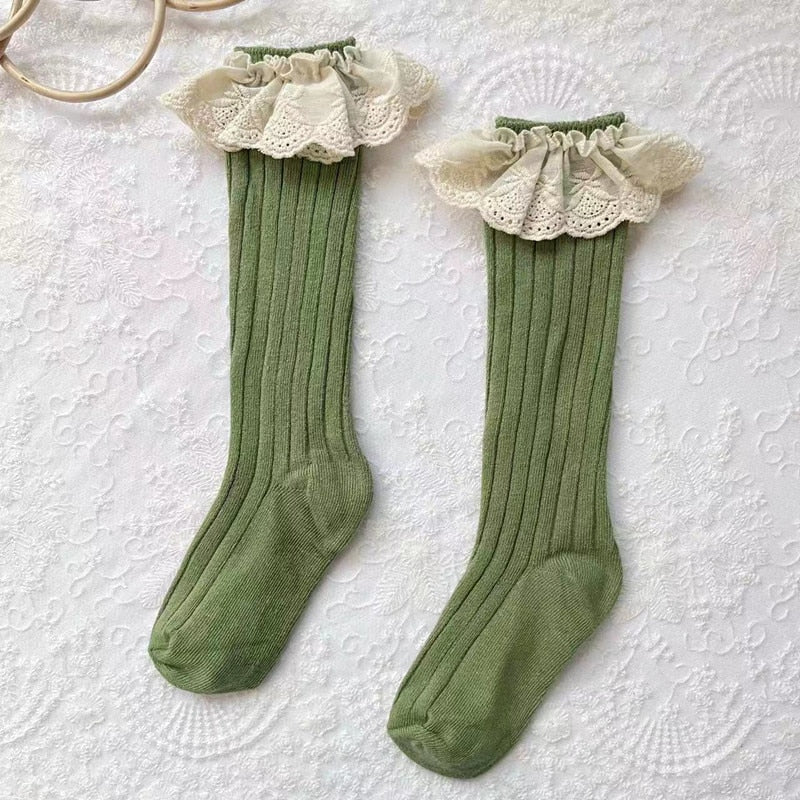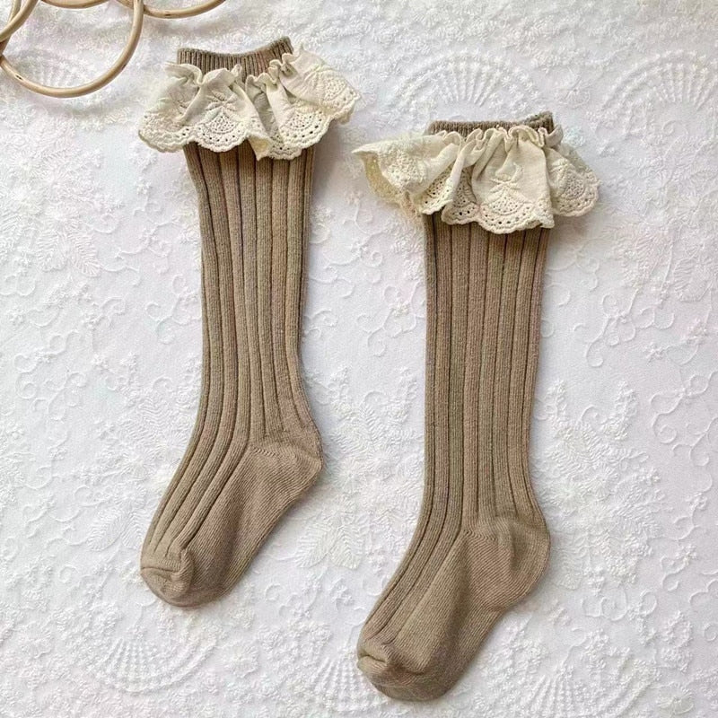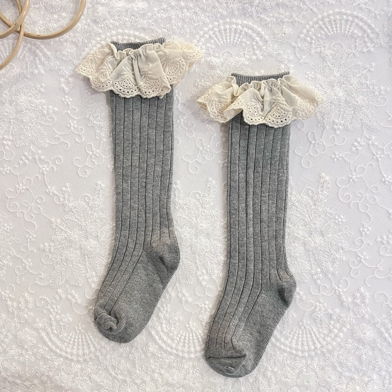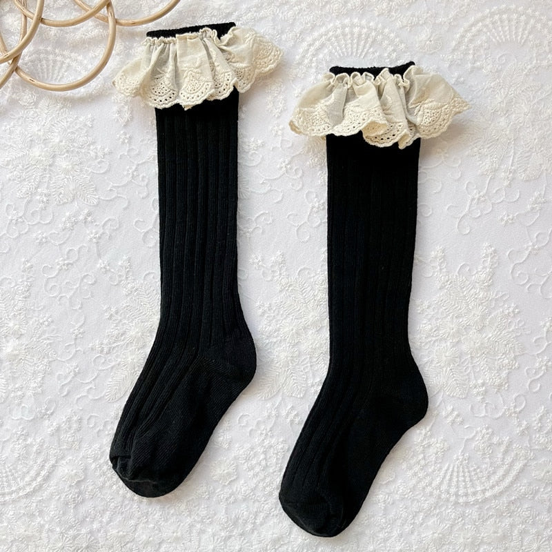 Chaussettes longues mignonnes à volants et fleurs en dentelle pour filles