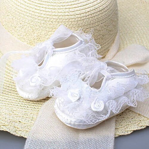 Chaussures bébé en satin et dentelle florale