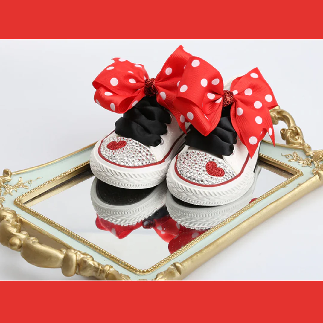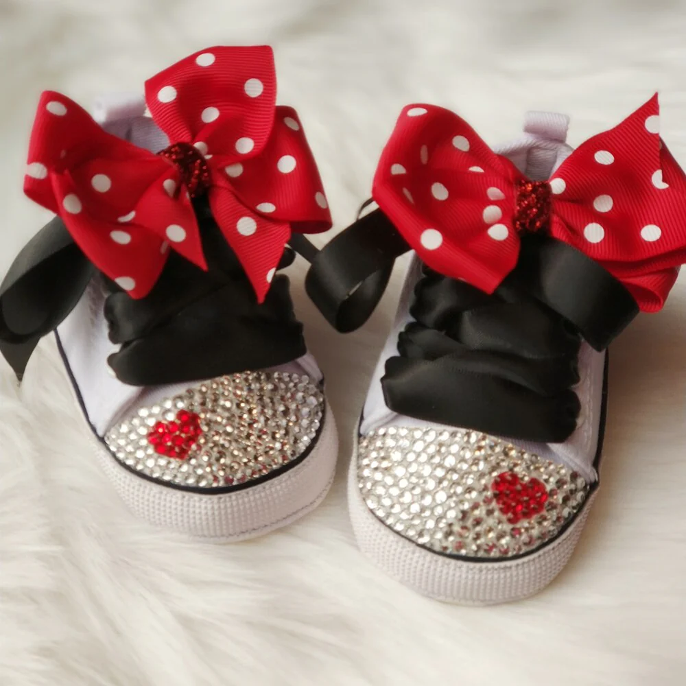 - Superbes chaussures pour bébé faites à la main avec un adorable nœud à pois.