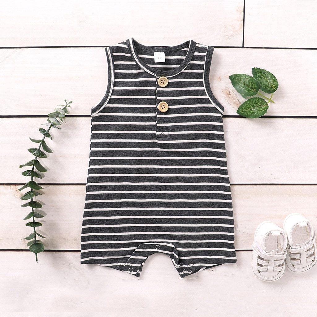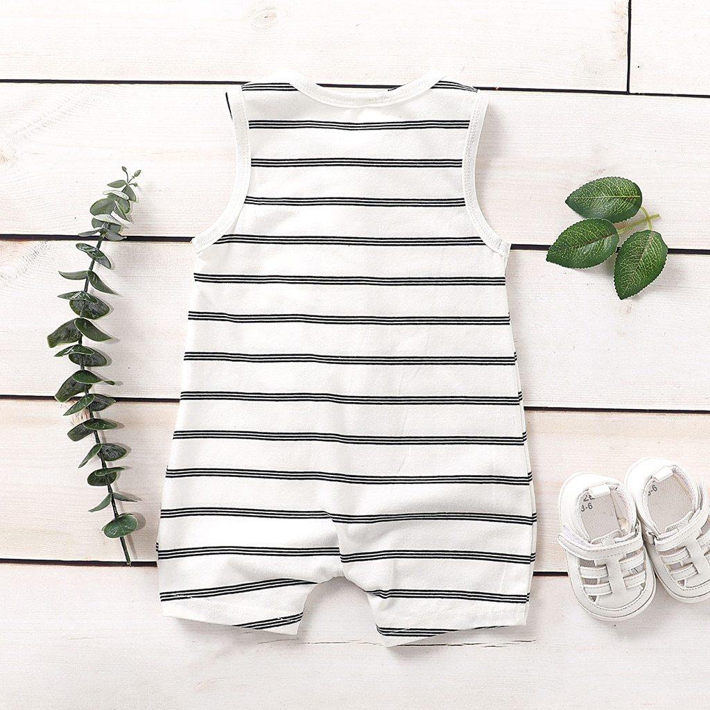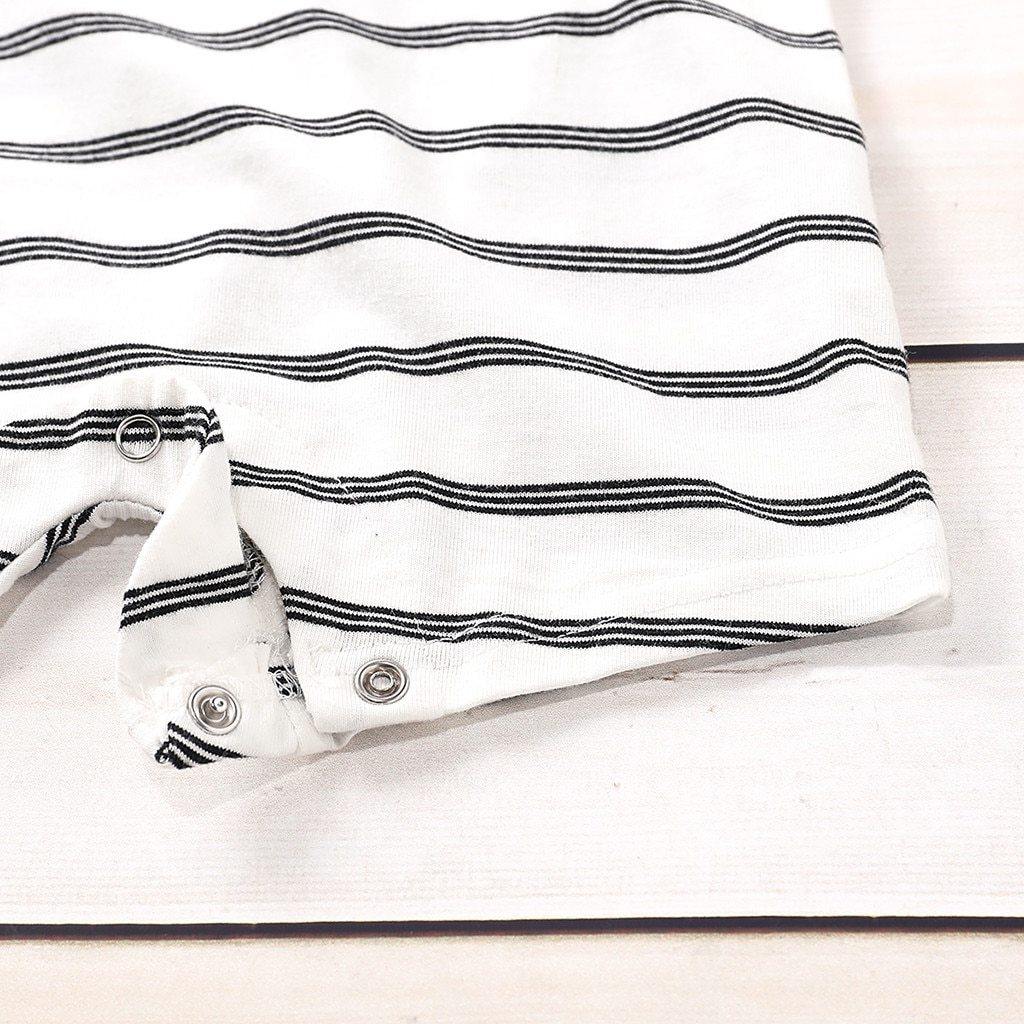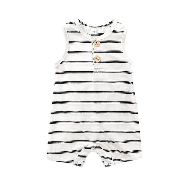 Combinaison sans manches à rayures pour l’été est une tenue incontournable pour la garde-robe de votre bébé. Elle présente la combinaison classique de couleurs noir et blanc. La coupe ample de la combinaison et le design sans manches permettent au bébé de bouger librement. Le tissu est un mélange de coton, confortable à porter et doux pour la peau sensible du bébé. Les boutons-pression facilitent les changements de couche rapides. Elle est idéale pour l’été, cependant, la tenue peut servir de body à porter sous des pulls ou vestes en hiver également.
