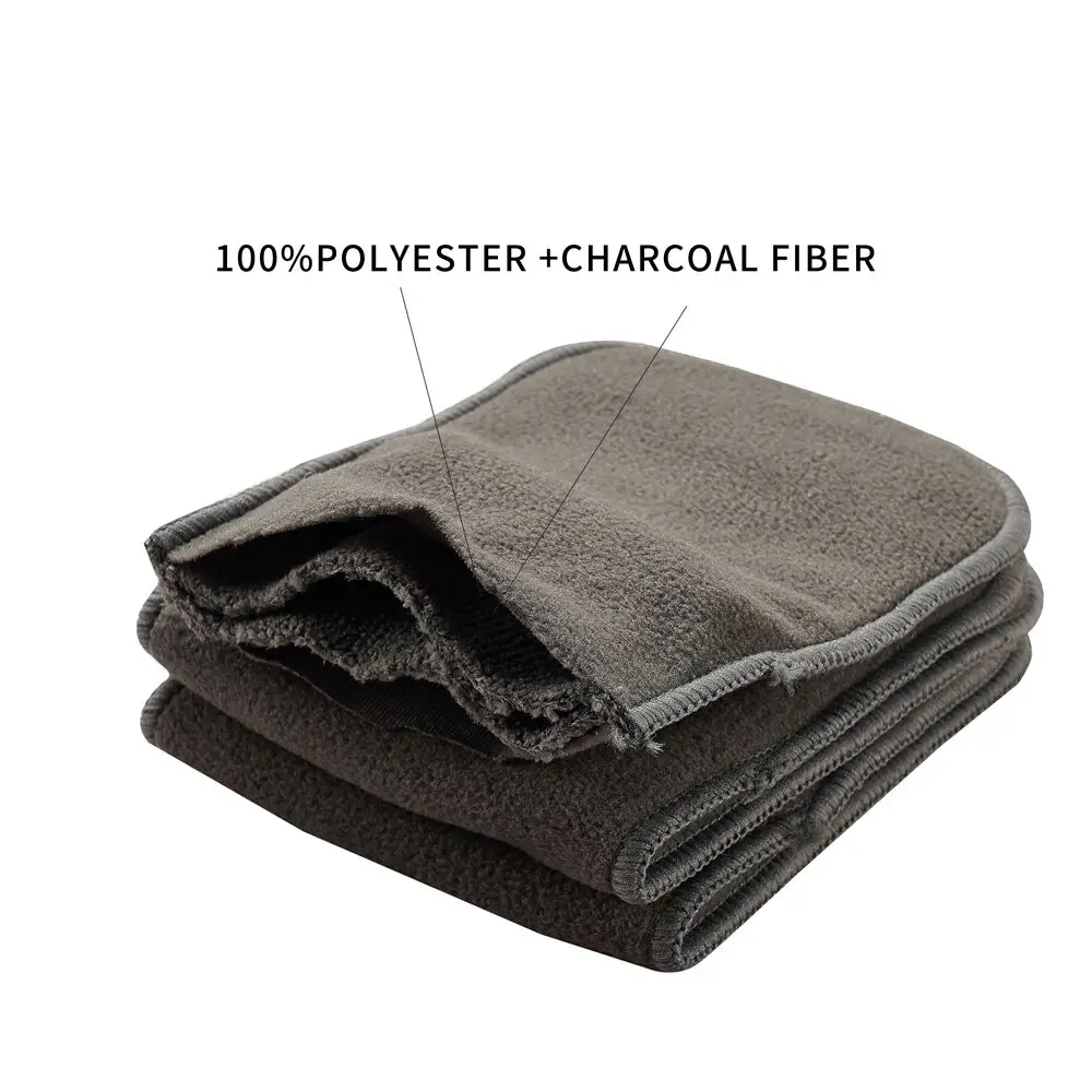 Composition : 2 couches de charbon de bambou + 2 couches de microfibre (100 % polyester + charbon de bambou)