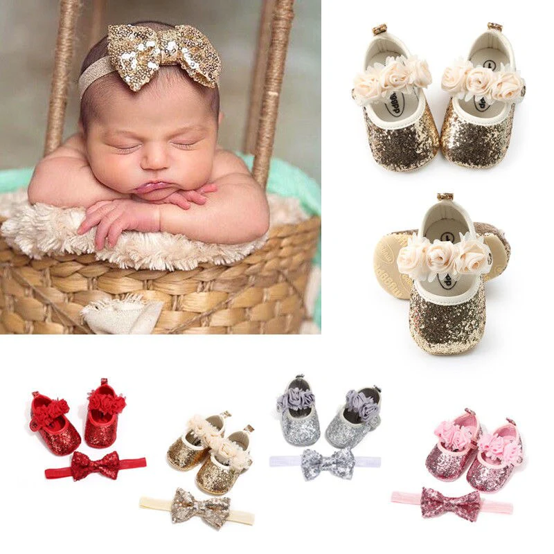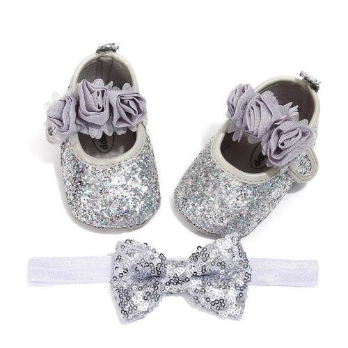 Laissez votre petite princesse briller avec cet ensemble scintillant Chaussures à Paillettes Noeud Papillon + Bandeau. Conçus et fabriqués professionnellement pour s’adapter parfaitement à la tenue à la mode de votre bébé ! Des chaussures douces et flexibles pour un port confortable, accompagnées d’un adorable bandeau à ruban assorti qui en fait un cadeau idéal pour les bébés.
