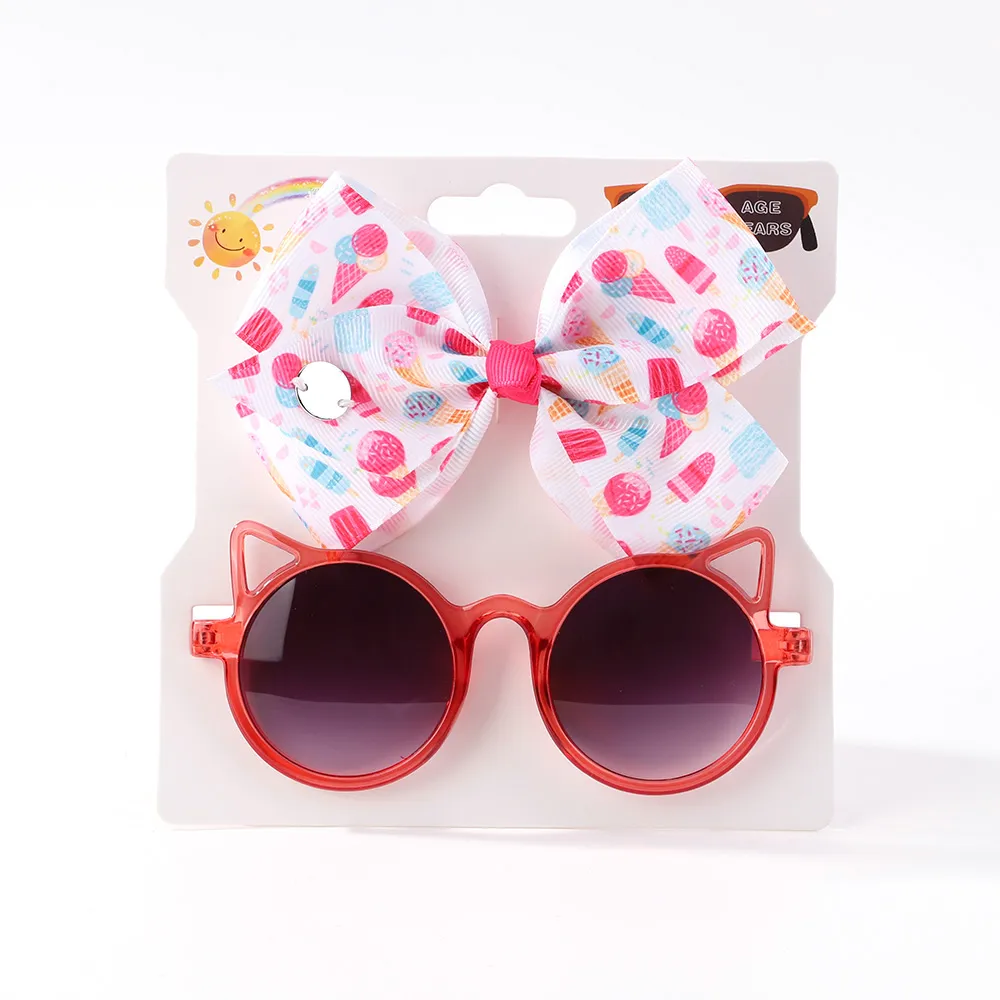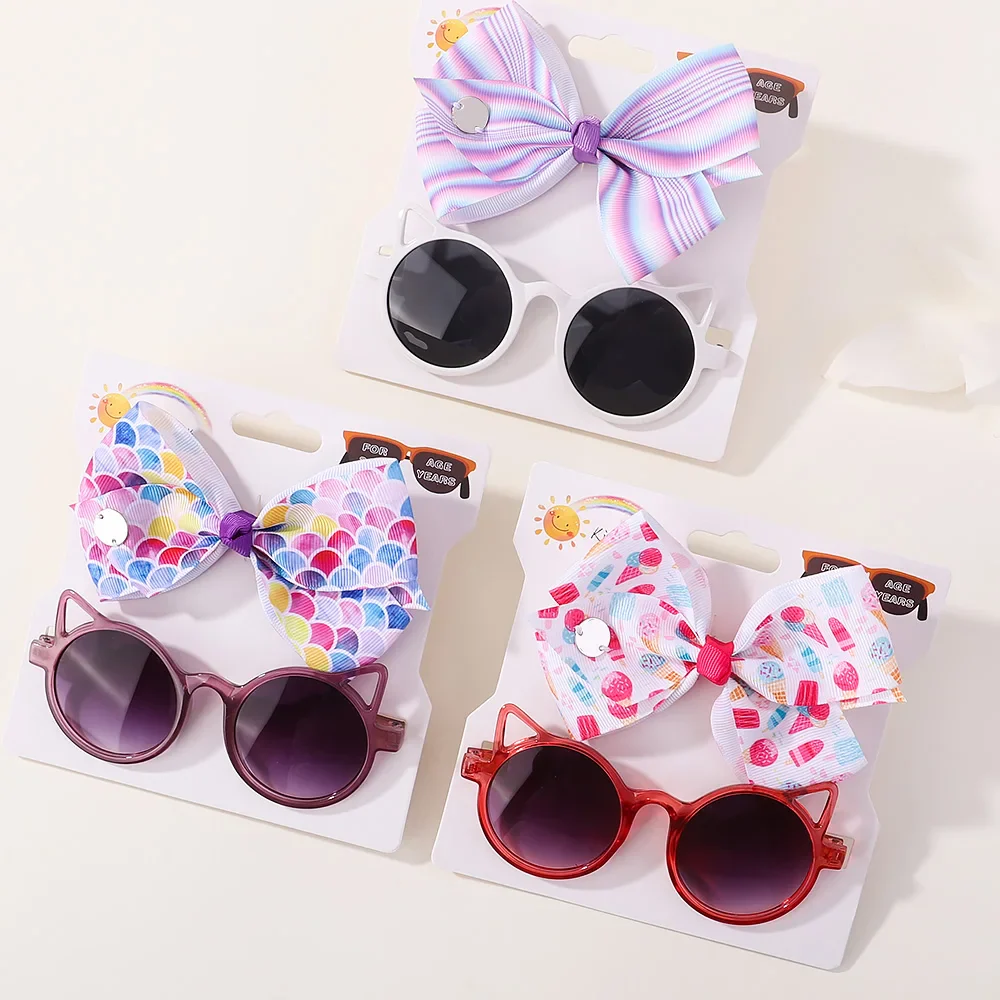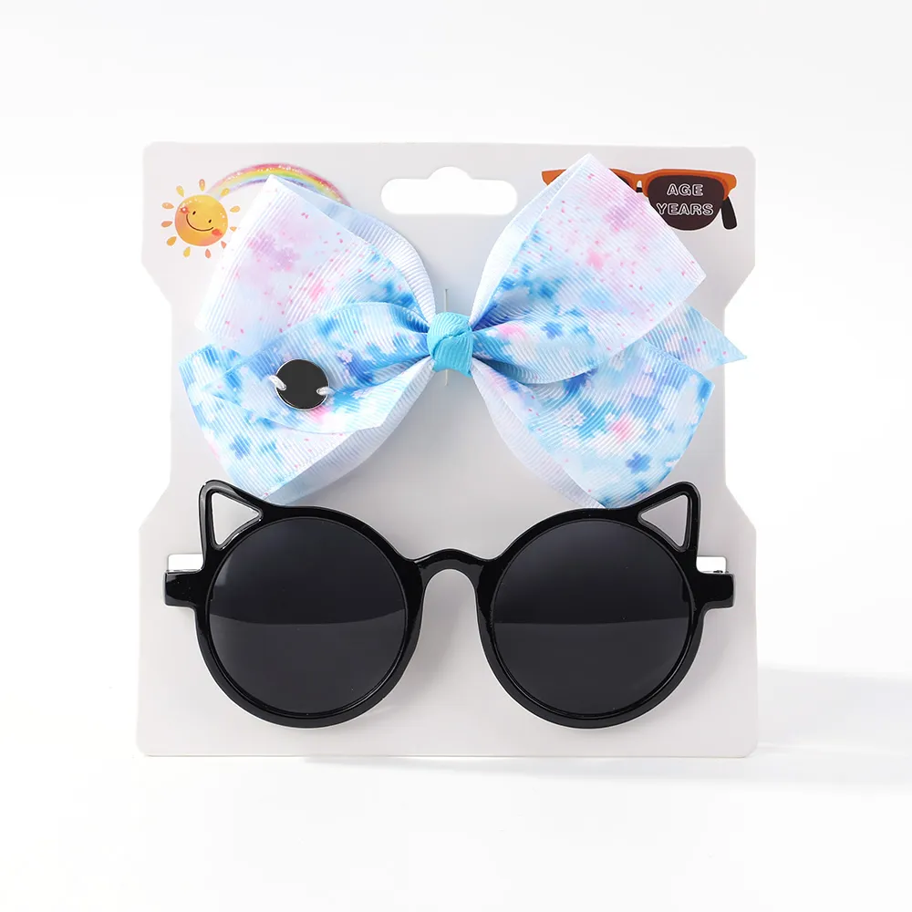 Ensemble d’accessoires pour cheveux pour bébé fille : lot de nœuds et de lunettes de soleil style dessin animé