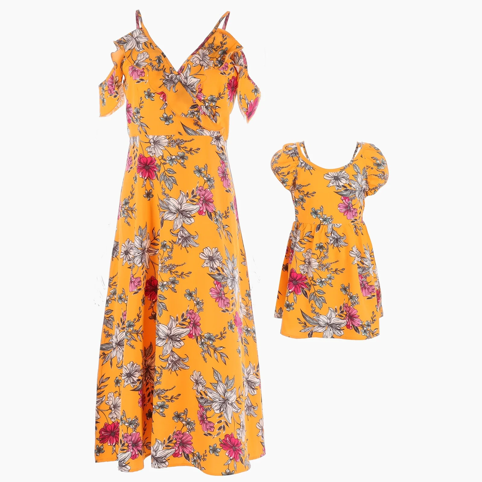 Ensemble de jolies robes fleuries pour maman et bébé