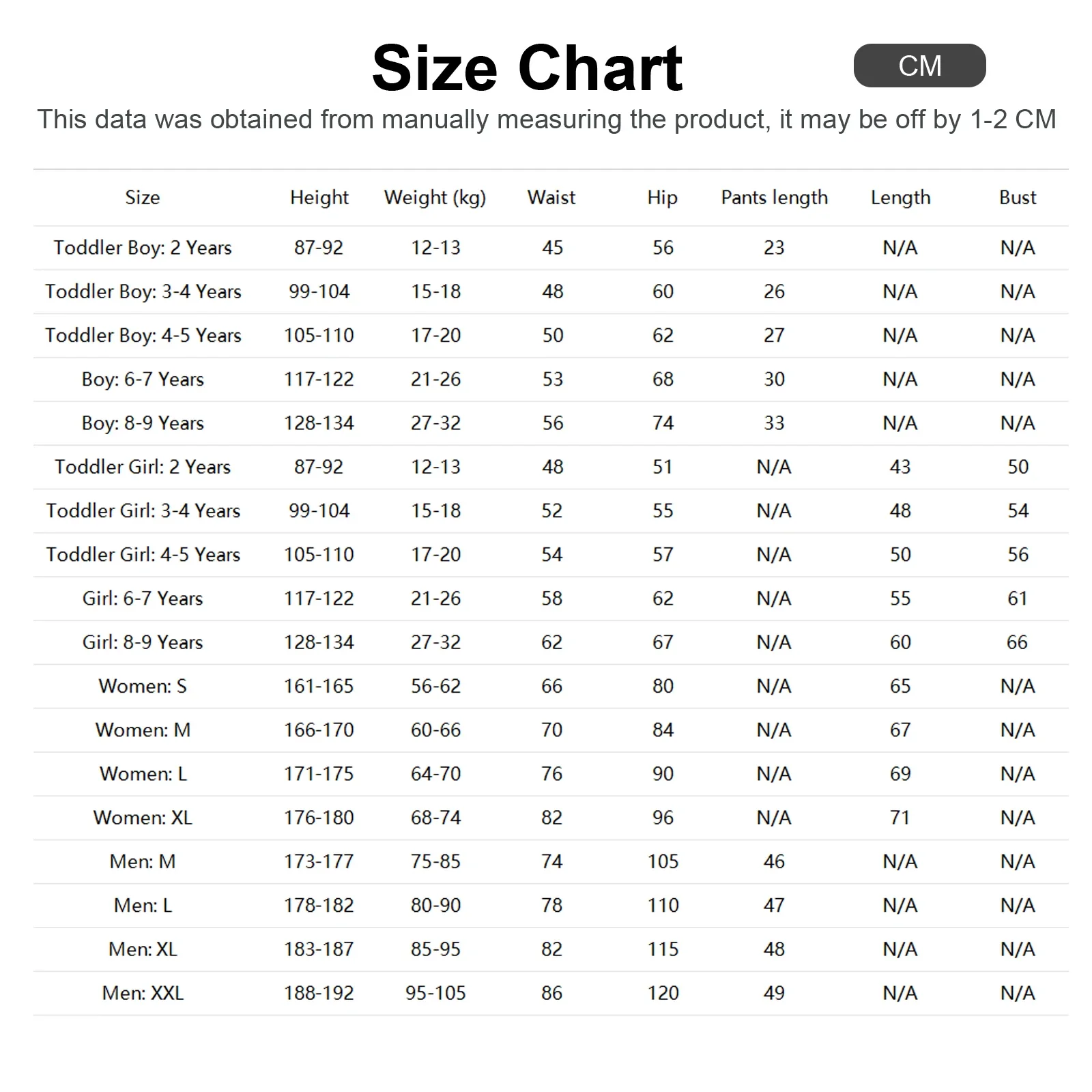 - Guide des tailles : (1 cm) = 0,3937 pouce)