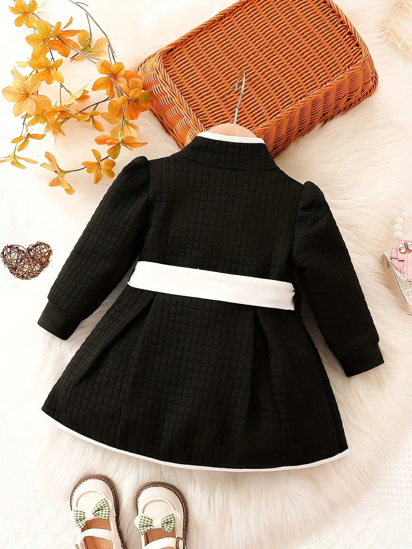 Design chic : Cet ensemble robe présente un contraste intemporel de noir et blanc, ajoutant une touche d’élégance à la garde-robe de votre bébé.