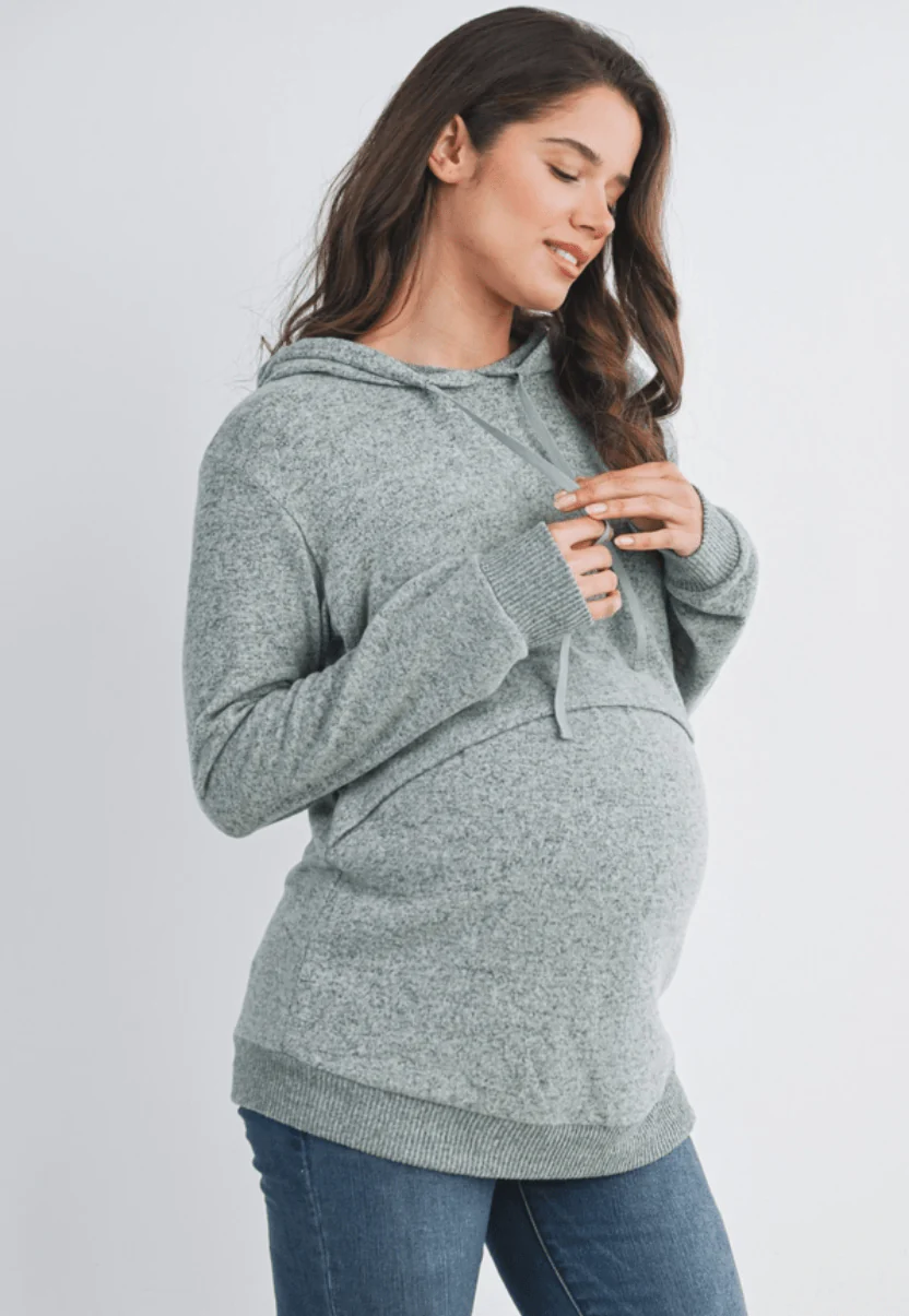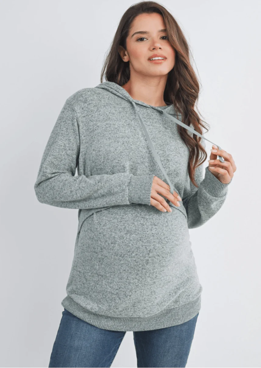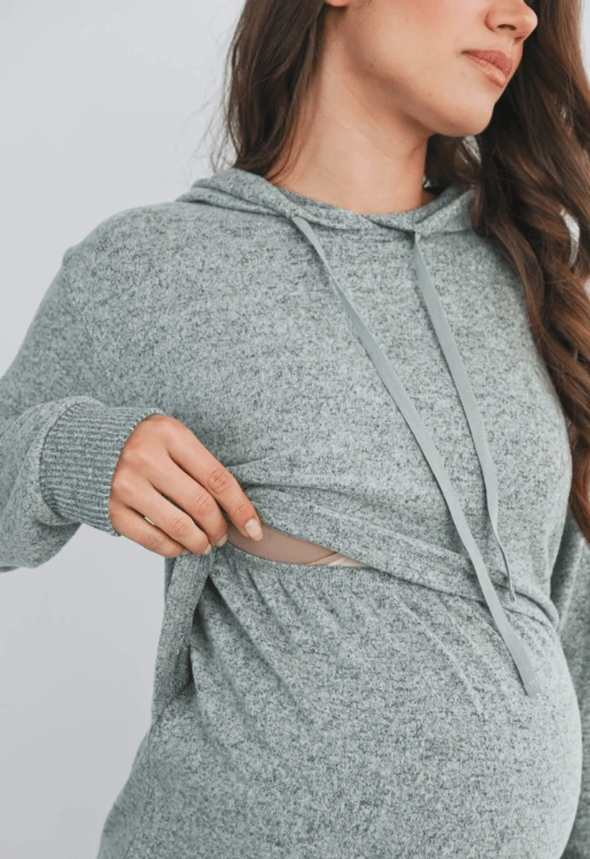 Haut à manches longues et capuchon pour la maternité et l’allaitement.