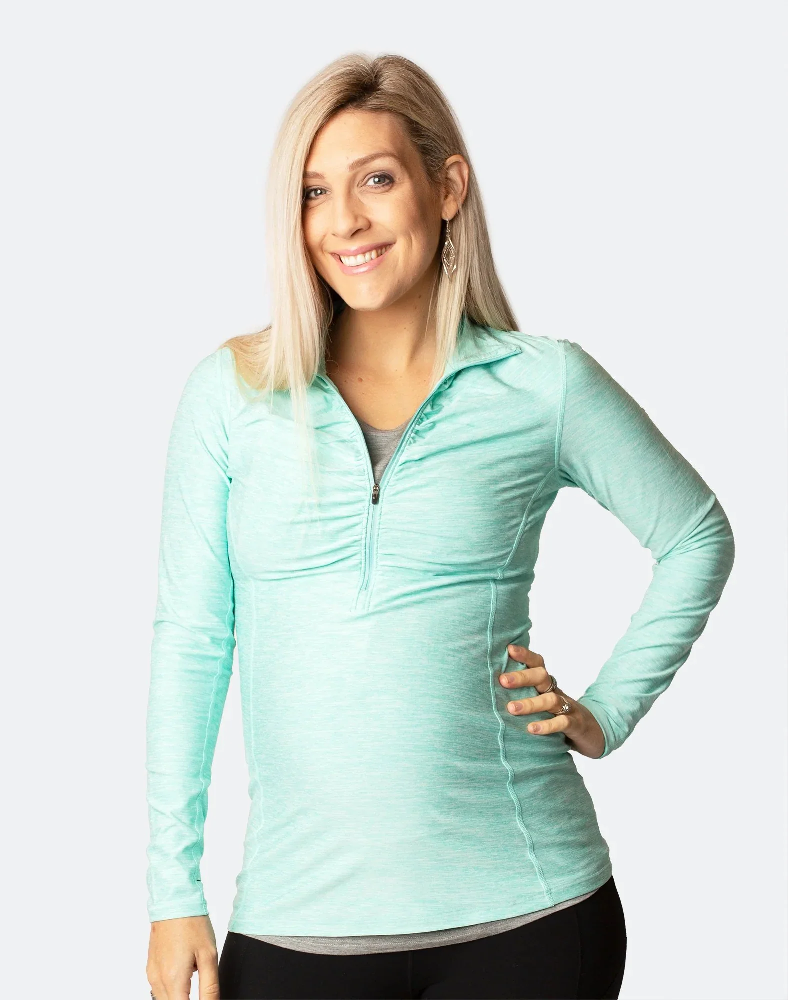 Le haut à demi-zip Aspire de Cadenshae est un nouveau design innovant qui permet un accès facile à l’allaitement en cas de besoin ainsi qu’une coupe flatteuse et confortable, parfaite pour l’exercice et les tenues décontractées au quotidien. Vous ne devineriez même pas qu’il s’agit de vêtements de maternité !