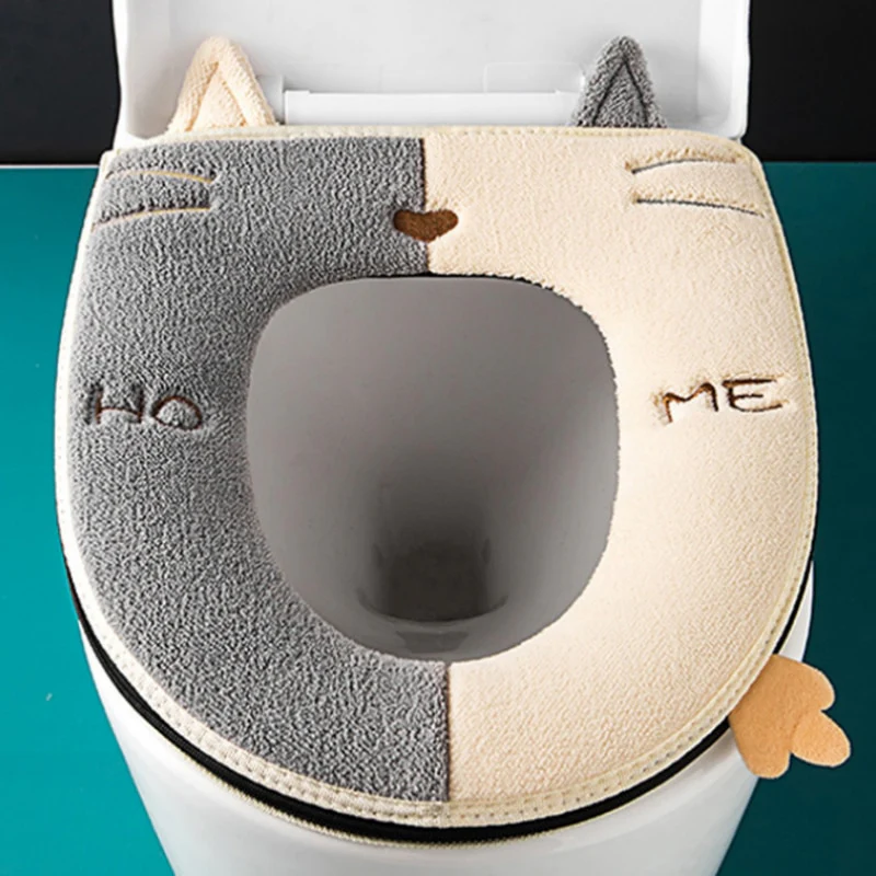 Housse de siège de toilette avec poignée épaisse et mignonne avec motif de chat de dessin animé