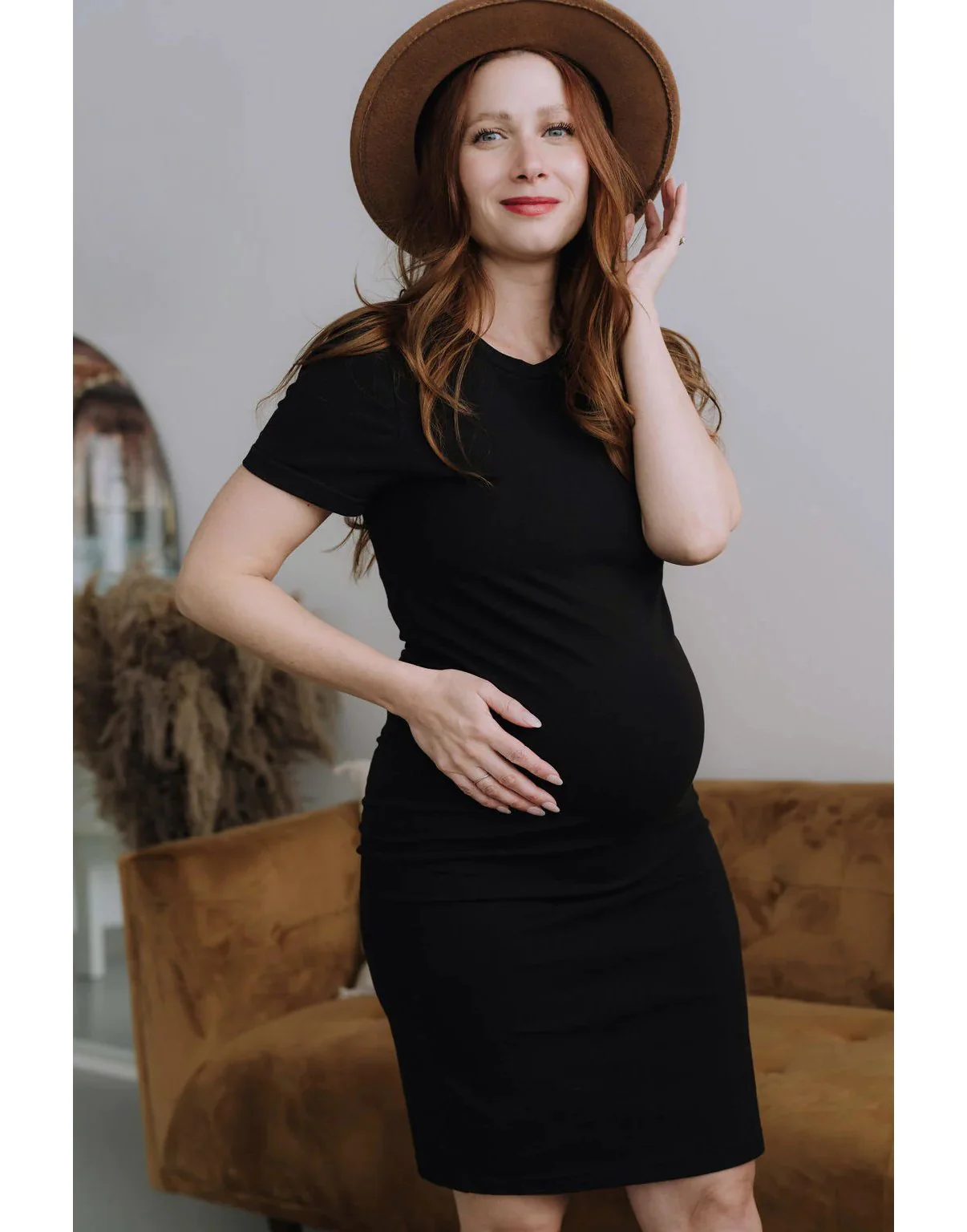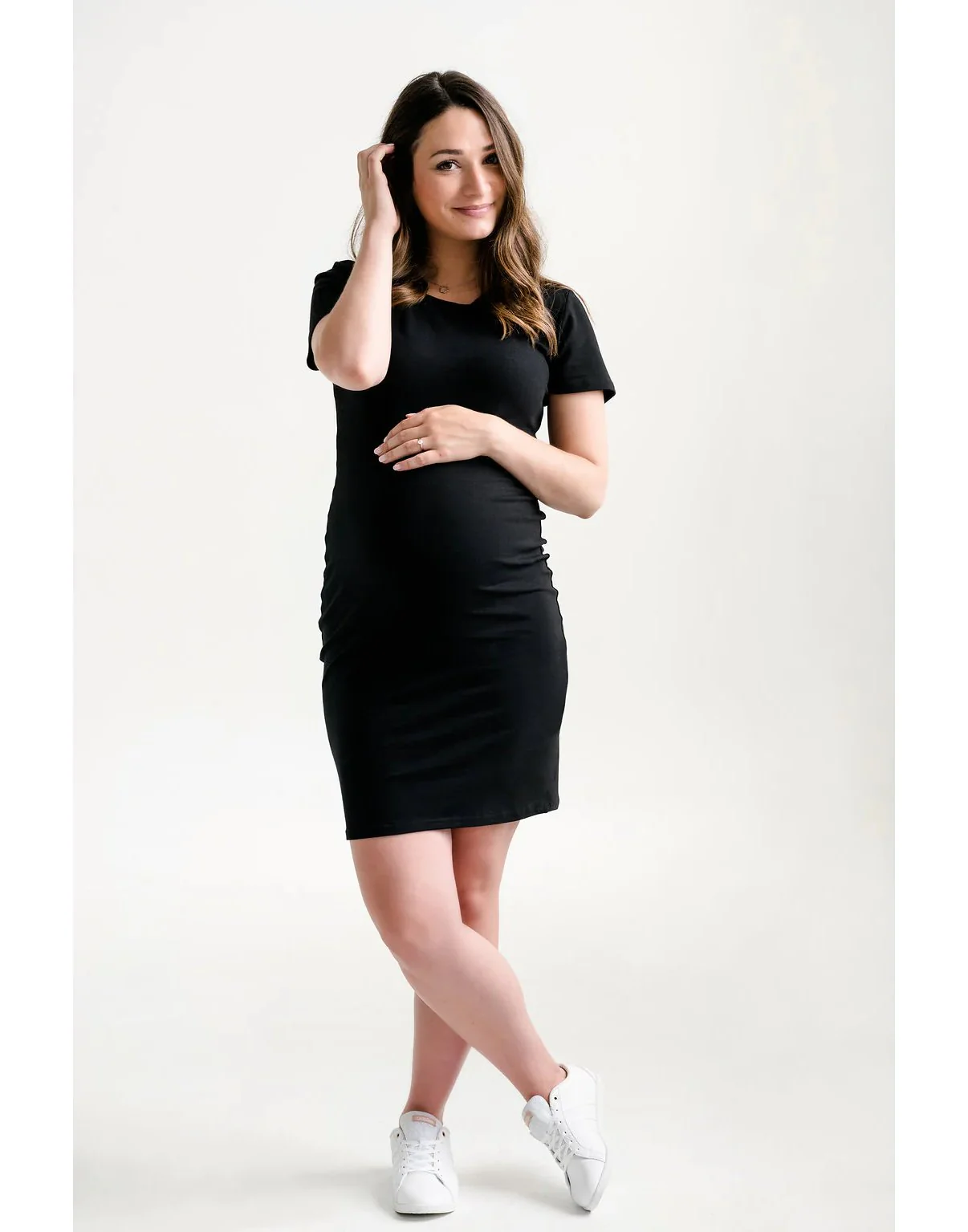 Optez pour cette robe t-shirt basique et intemporelle pensée pour la nouvelle maman. Ultra confortable, vous ne pourrez vous en passer! Cet item deviendra certainement un passe-partout dans votre garde-robe pour toutes les saisons! C’est la nouvelle robe classique pour toutes les occasions d’une maman ou d’une future maman!