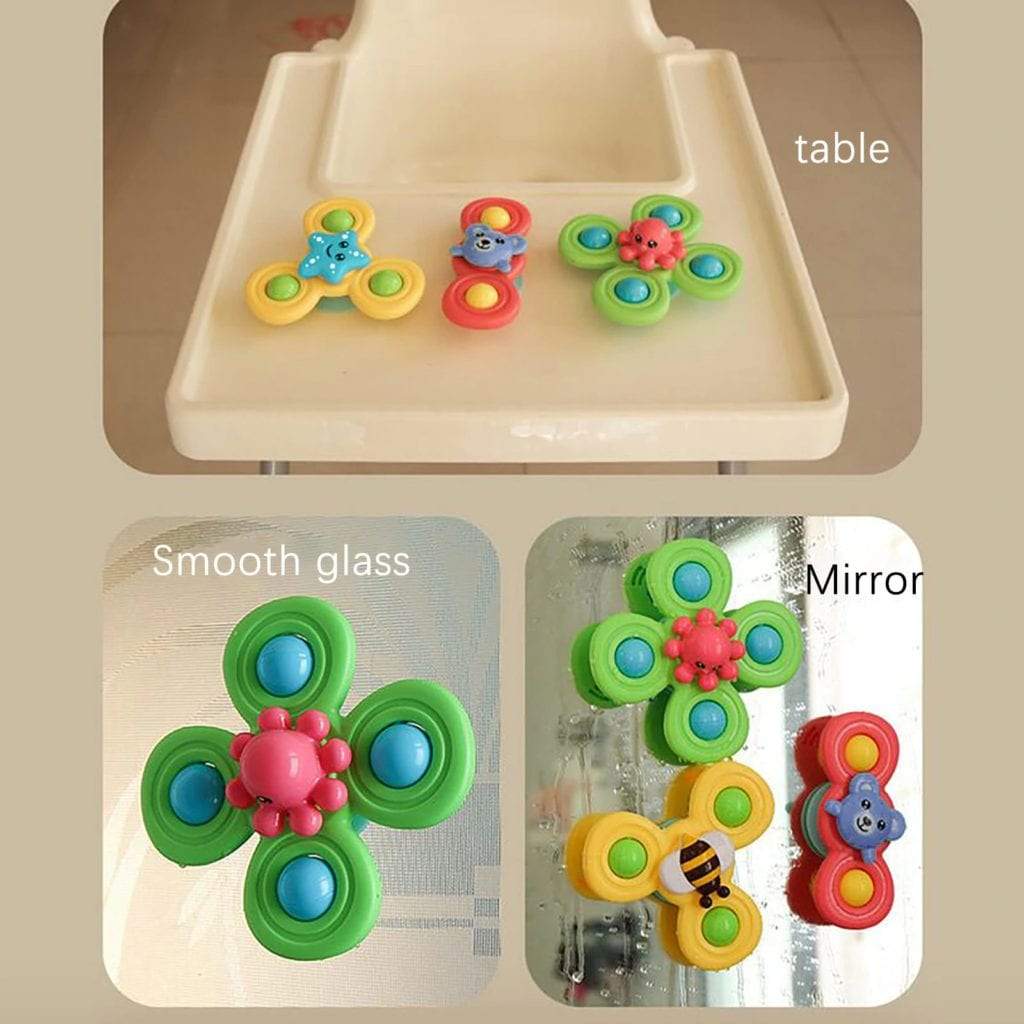 Ce jouet interactif à trois couleurs, en forme de mignon animal Jouet Toupie à Ventouse s’adapte parfaitement à votre petit. Laissez les bébés percevoir le charme de l’équilibre, de la rotation, et du temps lors du jeu. Il peut détourner l’attention du bébé et réduire le stress émotionnel de l’enfant. Il augmente le plaisir et stimule la réflexion pour aider les enfants à grandir.