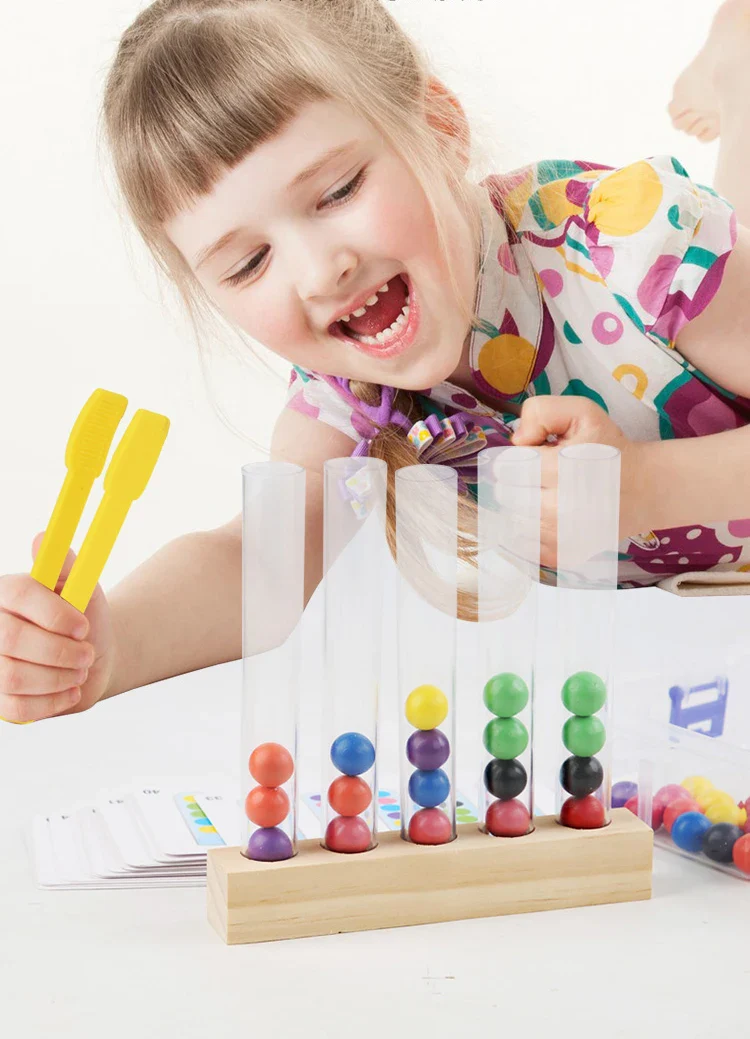 Jouet tube à essai à perles à clipser : jeu éducatif Montessori