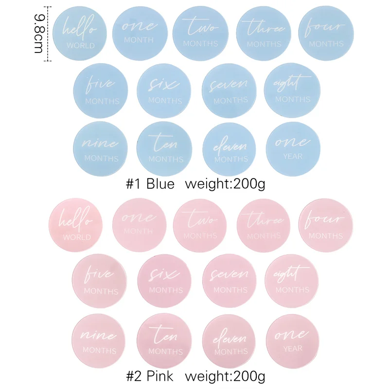 Lot de 13 cartes mensuelles en acrylique pour bébé – Accessoires photo pour nouveau-né de 0 à 12 mois | Cadeau souvenir en 5 couleurs