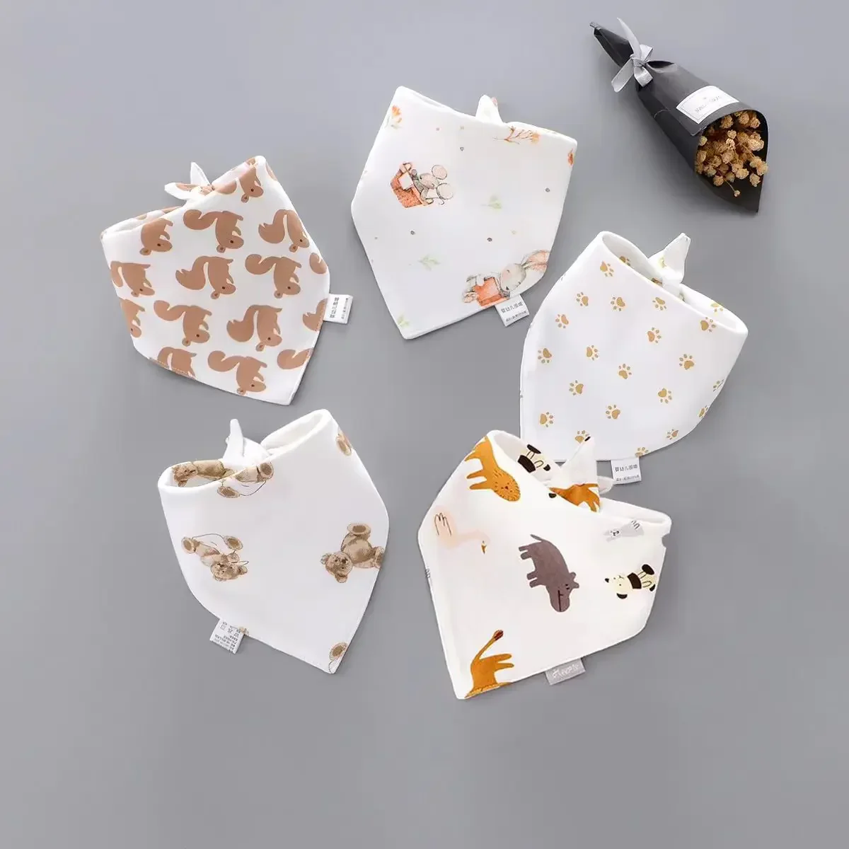 Lot de 5 bavoirs en coton à motifs de dessins animés : serviettes pour nourrir bébé et éliminer la salive