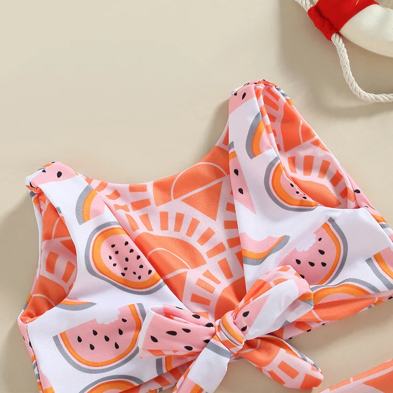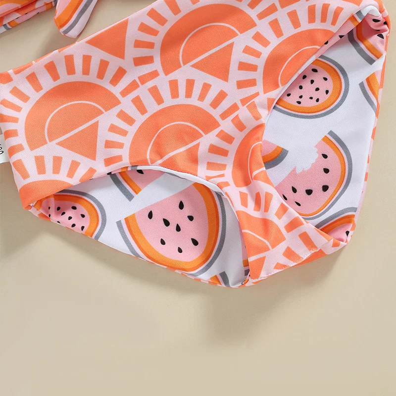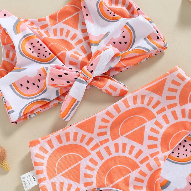 Maillot de bain rayé à imprimé pastèque : maillot de bain de plage deux pièces pour fille