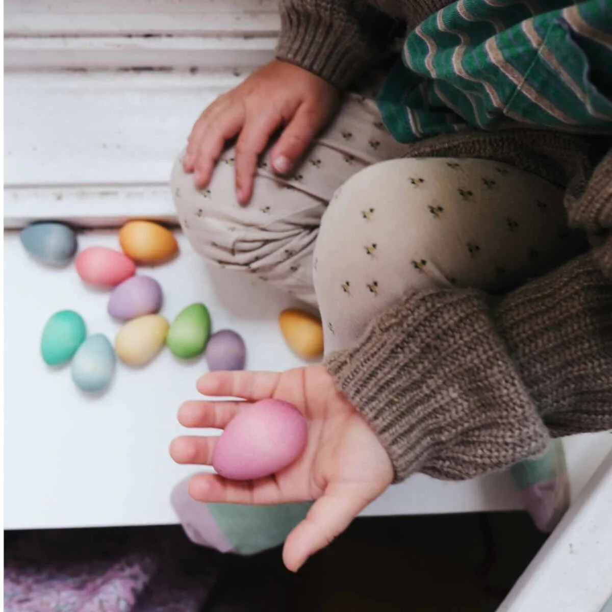 Leur format est parfait pour les petites et grandes mains! Ces oeufs aux couleurs pastel s’harmonisent dans n’importe quel décor. Ils pourront servir de cocos pour les différents animaux qui pondent des oeufs, comme les poules, les canards et autres oiseaux, ainsi que les dinosaures! Ces 12 oeufs peuvent être utilisés en guise de “loose parts” et permettre l’émergence de certains concepts mathématiques en étant utilisés pour trier ou en faisant des séquences, puis se transformer en jeu symbolique en devenant de la nourriture, une fois dans un bol. Nos petits aiment faire des collections de toutes sortes d’objets! Avec ces jolis oeufs, leur envie de collectionner pourra atteindre un autre niveau.