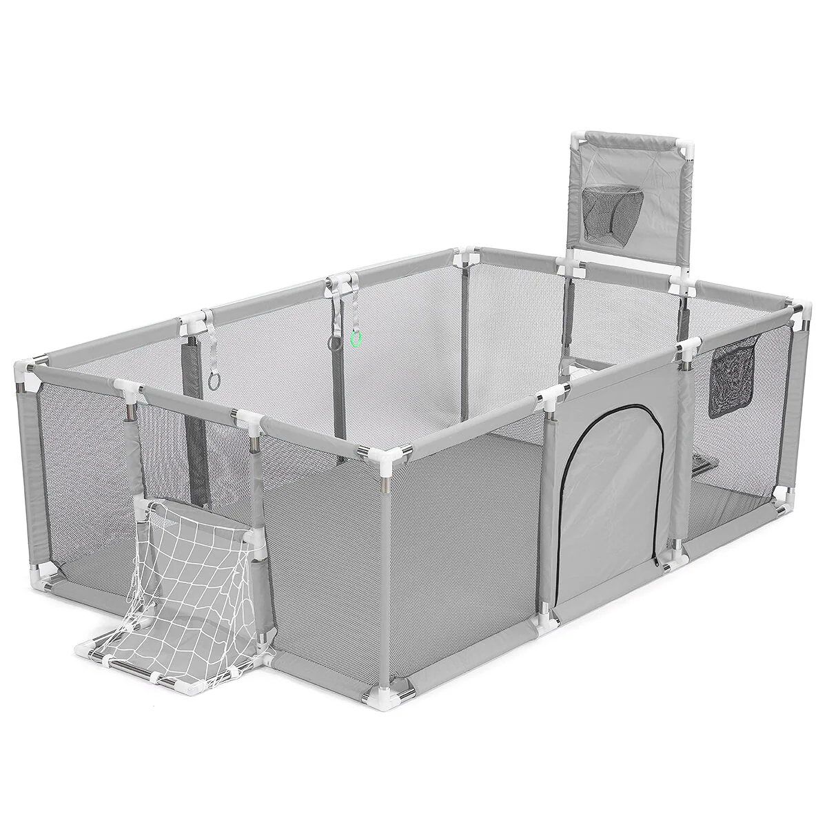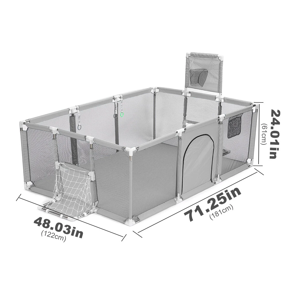 Offrez à votre enfant ce parc de jeu robuste et à l’épreuve des enfants. Il est à la hauteur parfaite pour que les enfants puissent jouer et que les parents puissent surveiller, au cas où vous auriez pu douter de la sécurité de votre enfant dans notre parc. Notre parc est doté de plusieurs fonctionnalités amusantes parmi lesquelles vous pouvez choisir, comme un but de football ou un panier de basketball !