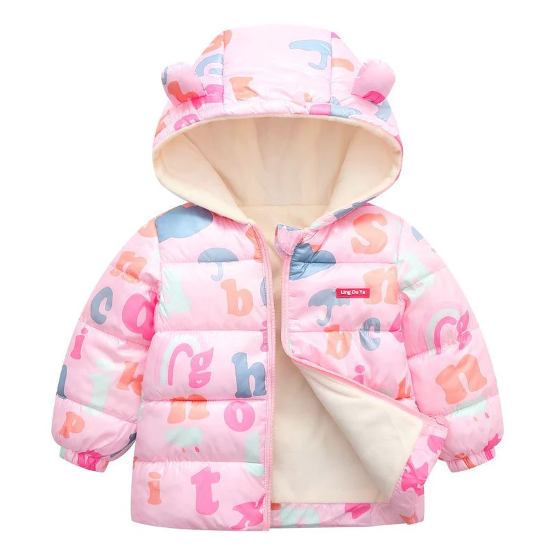 Cette parka rose à capuche motif dessin animé est une très belle veste. Son design classique de style dessin animé, avec de jolis motifs colorés et une fermeture éclair, rendront vos enfants plus attrayants. Fabriquée en fibre de polyester écologique, elle est douce et agréable à porter. Elle tient chaud pendant l’hiver et est pratique pour vos enfants grâce à sa légèreté.
