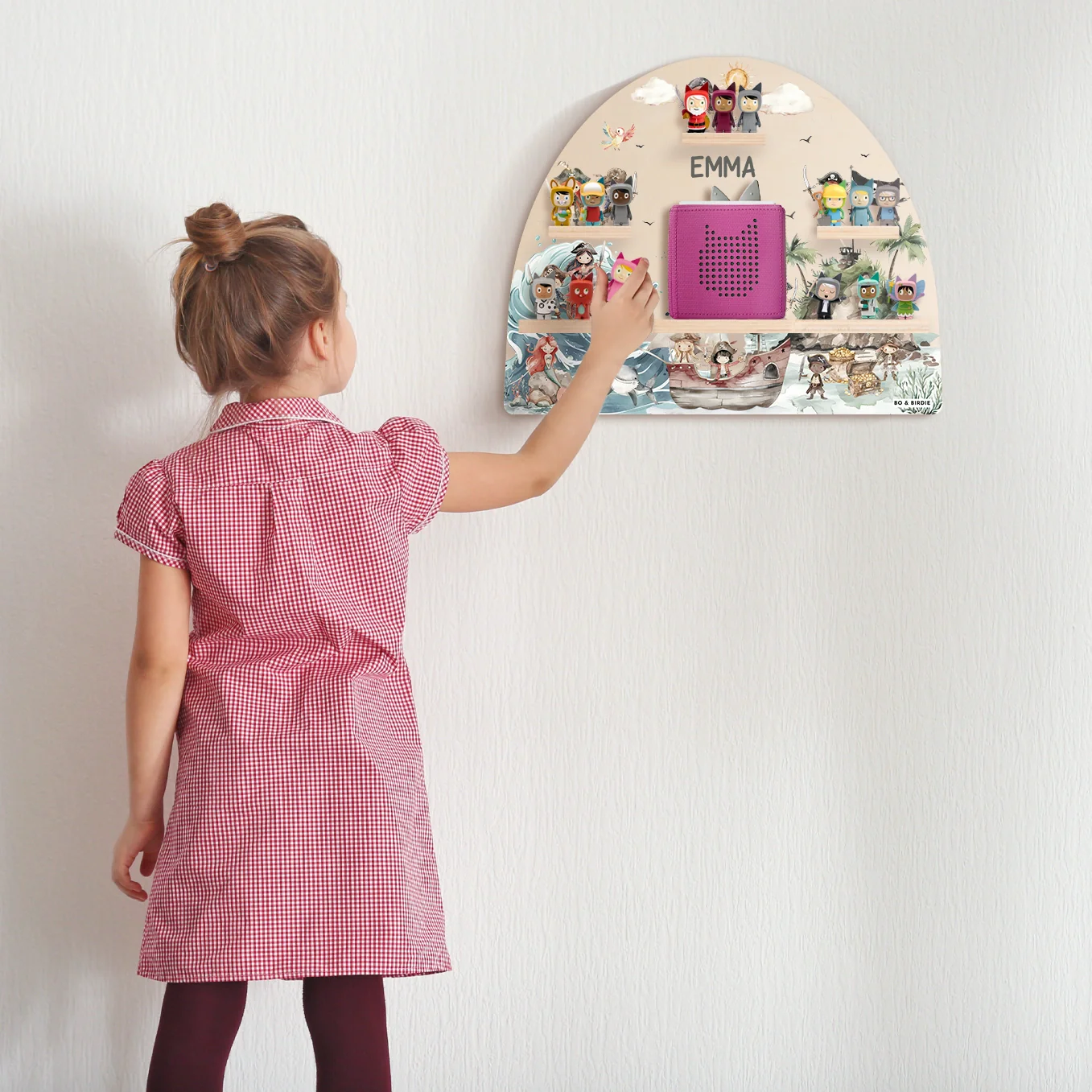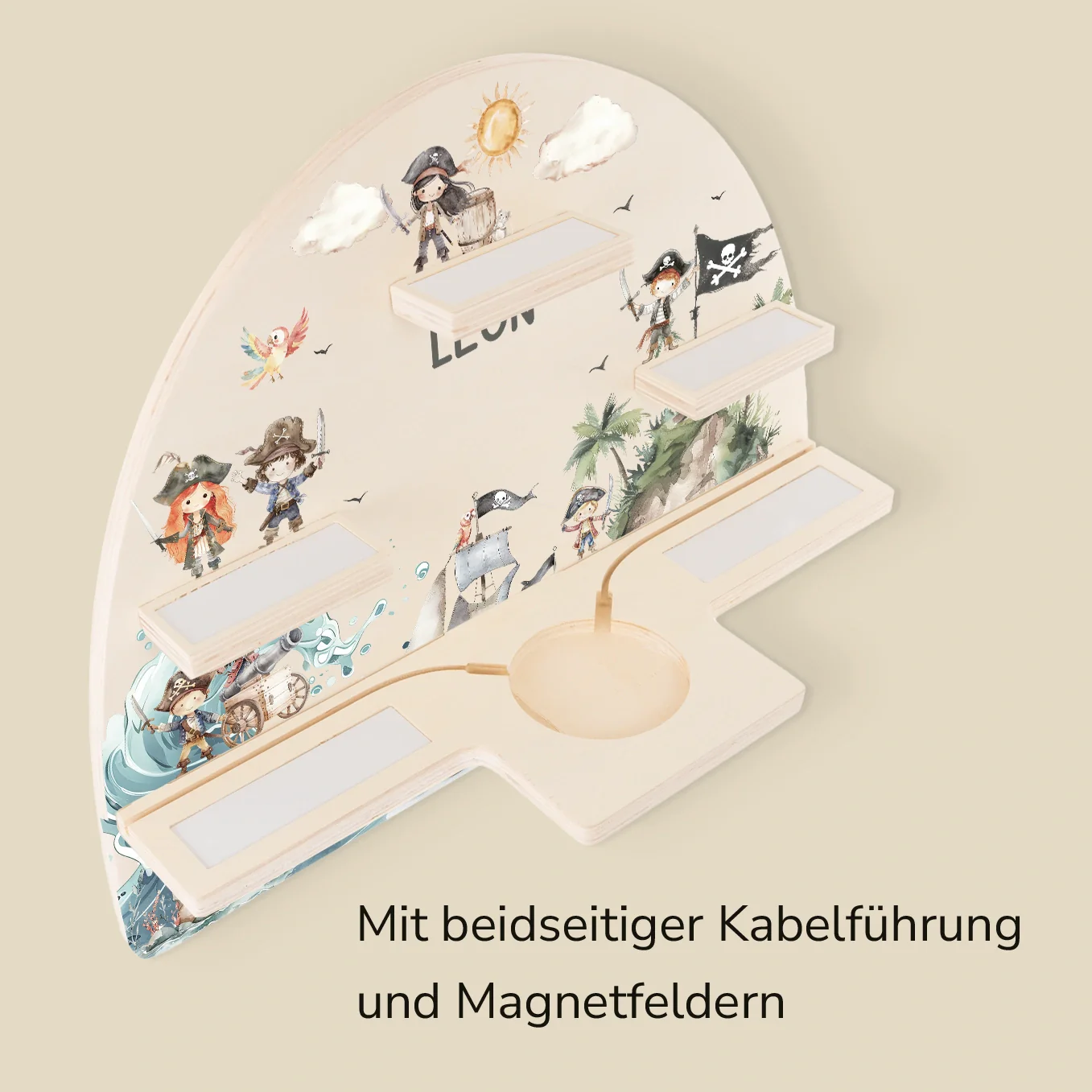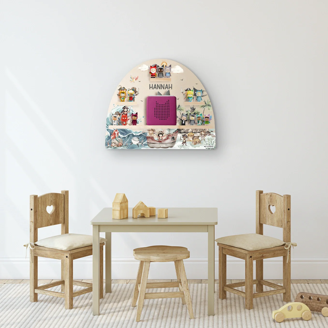 Personalisiertes Toniebox Regal « Schatzinsel » im abenteuerlichen Piraten-Design. Platz für 15 Tonie-Figuren und Toniebox.