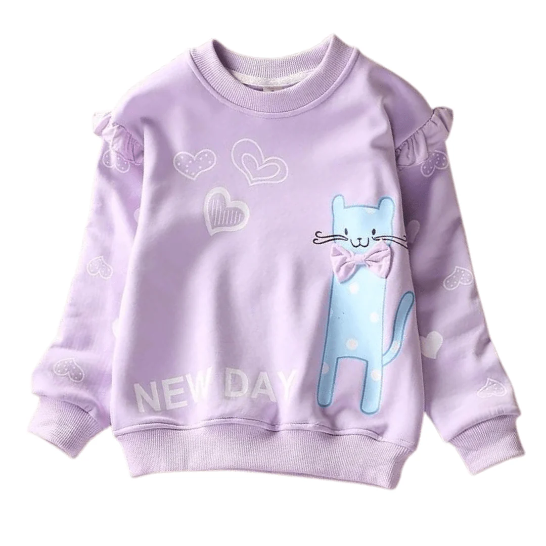 Ce pull New Day Cat Toon est très mignon et tendance pour les filles. Confectionné en coton, il est confortable à porter. Il présente un col rond, des manches longues et des imprimés cœurs. Son imprimé chat lui donne un look adorable. Il gardera votre petite fille bien au chaud pendant l’hiver.