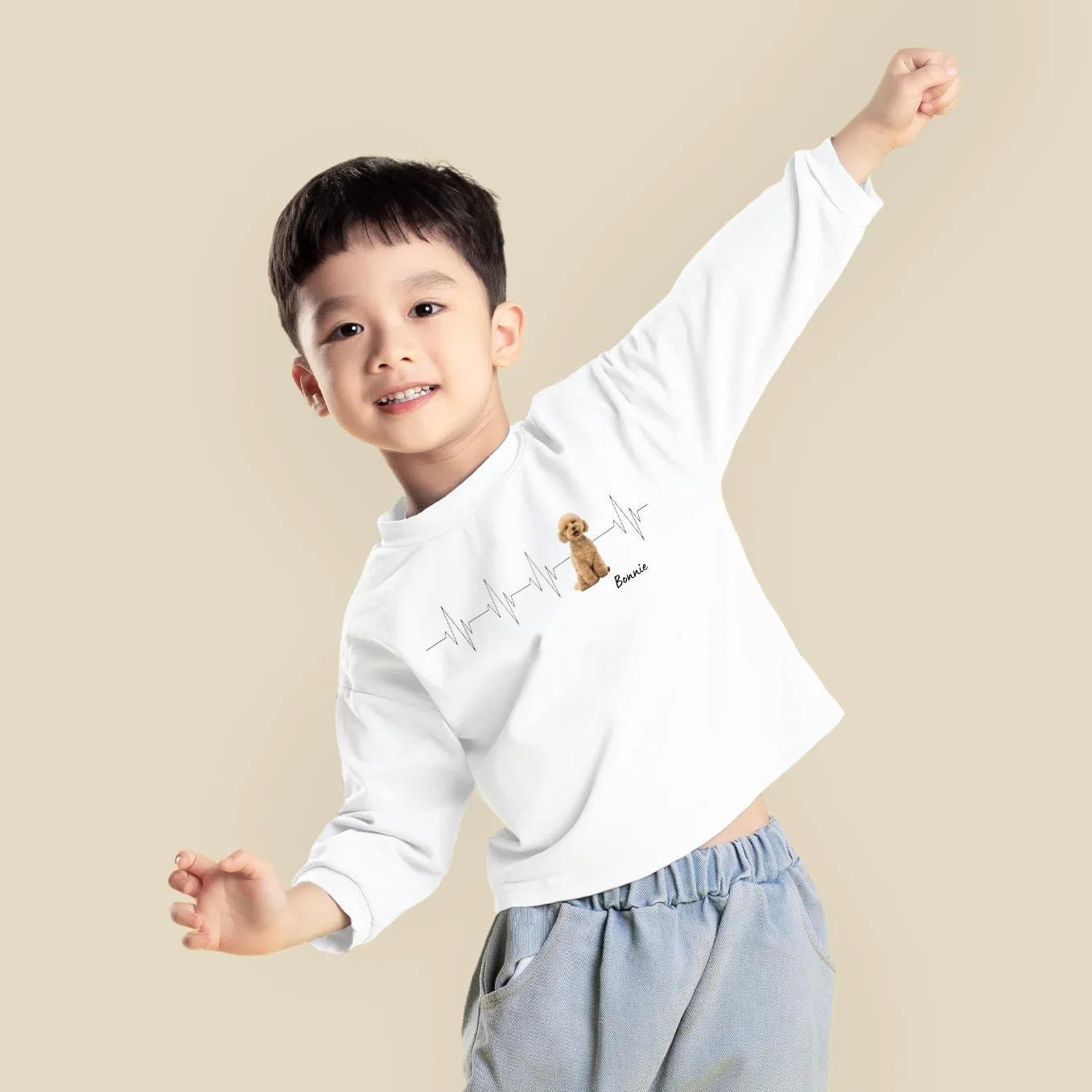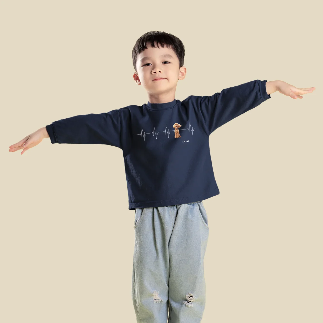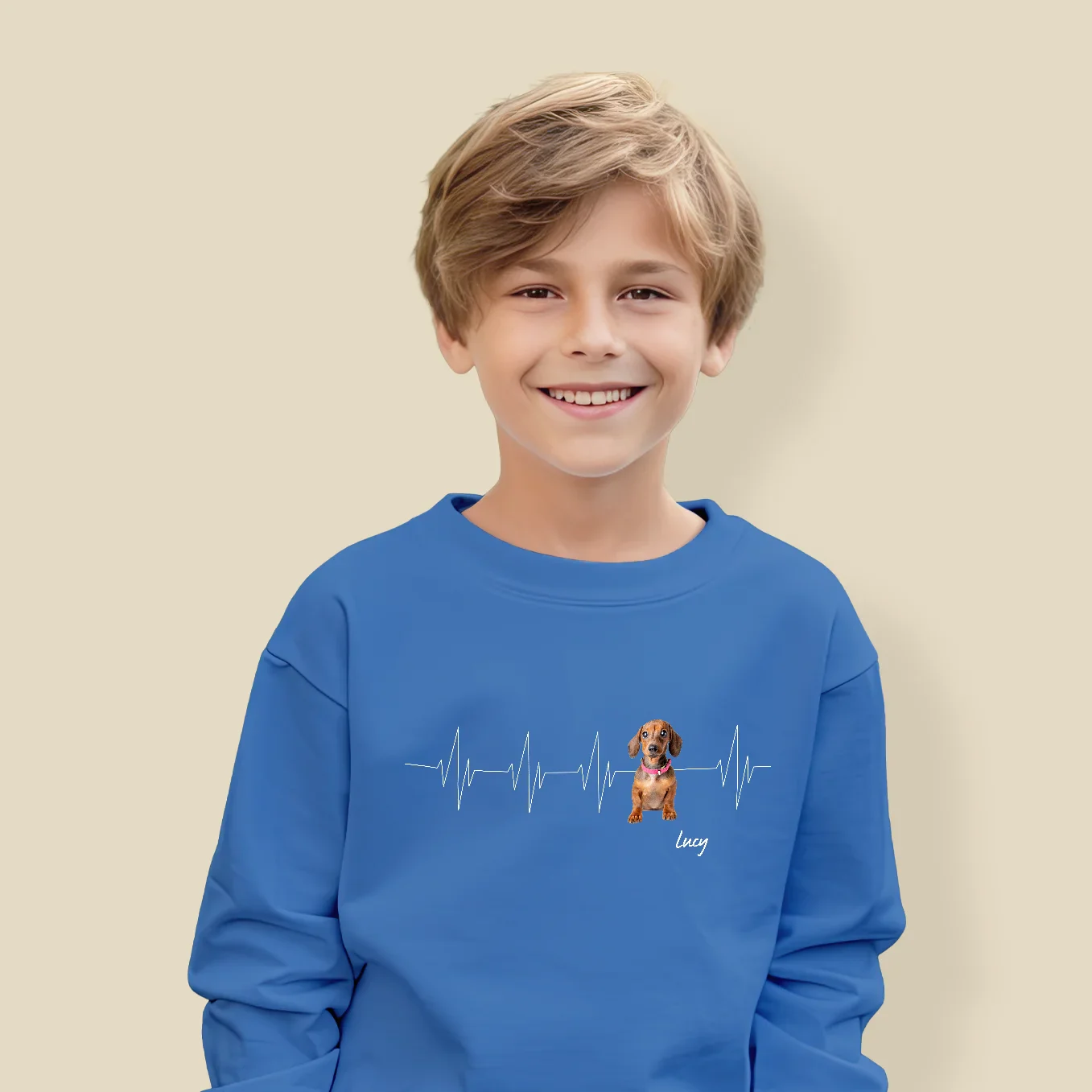 Pull enfant personnalisé « My Pet » avec photo et nom. Disponible en cinq couleurs.
