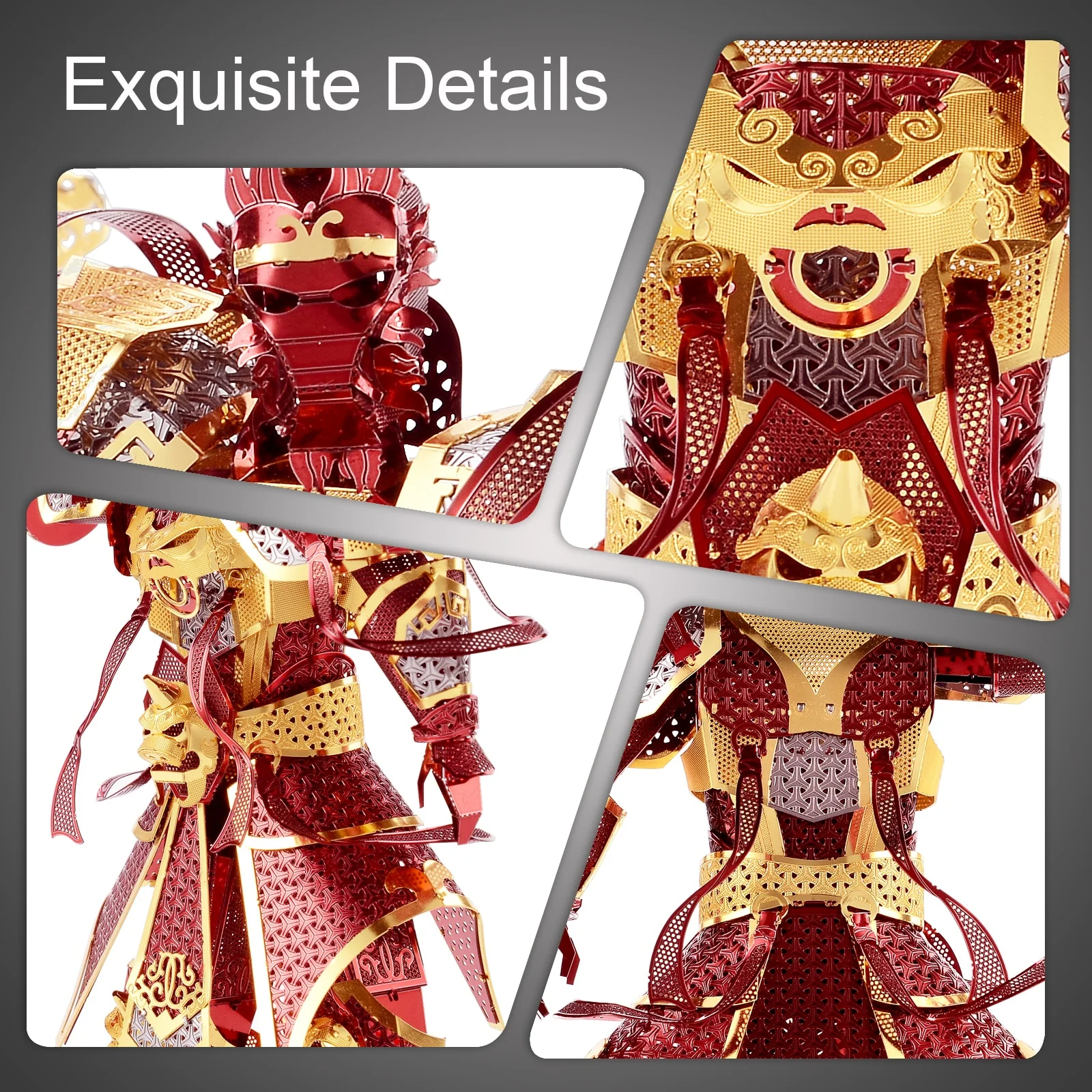 Le modèle 3D en métal assemblé du Roi Singe imite un célèbre personnage de la mythologie chinoise, tiré de l’un des quatre chefs-d’œuvre de « La Pérégrination vers l’Ouest ». Né de la pierre immortelle, il devint le roi de tous les singes en menant le groupe dans la grotte du rideau d’eau, vénéré comme le « Roi des Singes ». Il est intelligent, vif, loyal et naturellement haineux. Il porte une armure en or, des ailes de phénix et une couronne d’or violet sur la tête, tenant un gourdin d’or dans ses mains et marchant chaussé de chaussures-nuages.