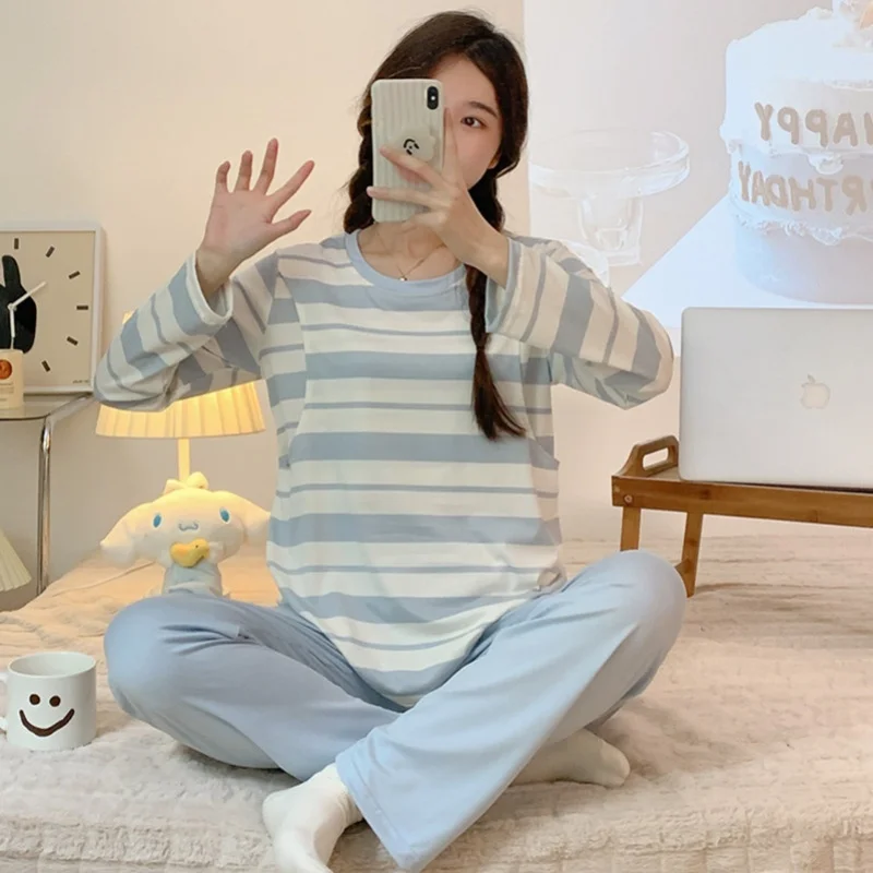 Pyjama de maternité – Vêtements d’intérieur à manches longues en coton doux pour la grossesse et l’allaitement