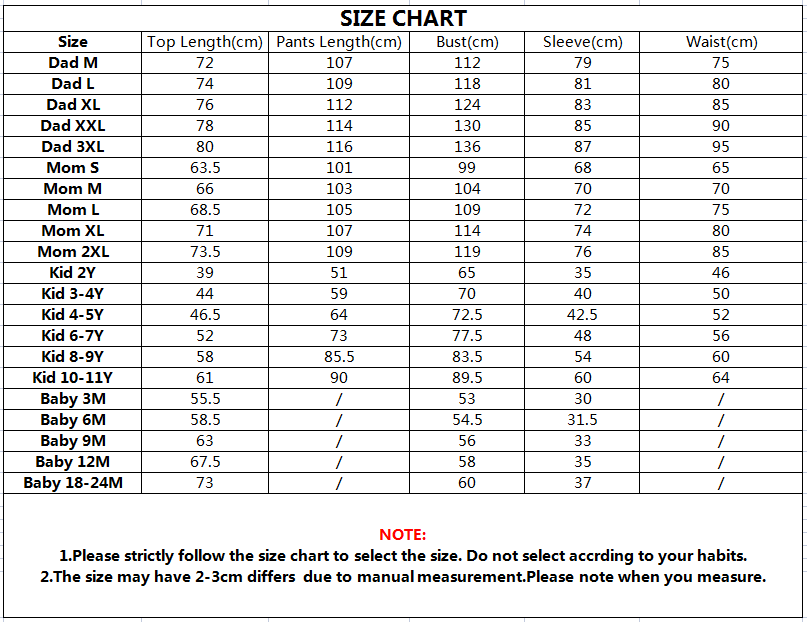 - Pyjamas de Noël disponibles en différentes tailles pour toute la famille.
