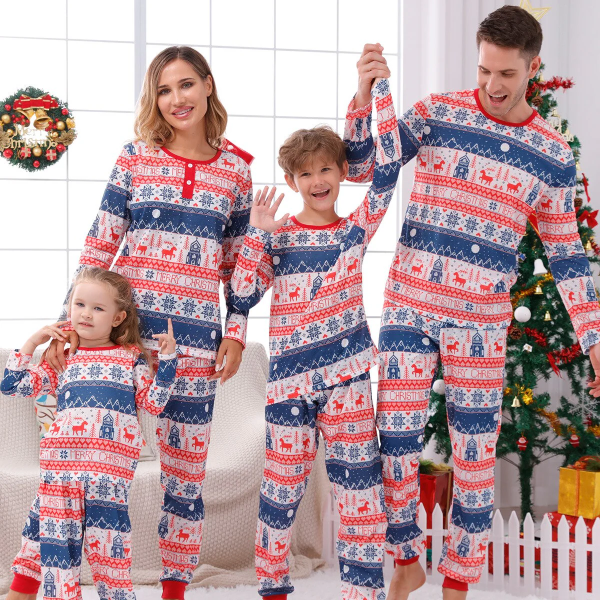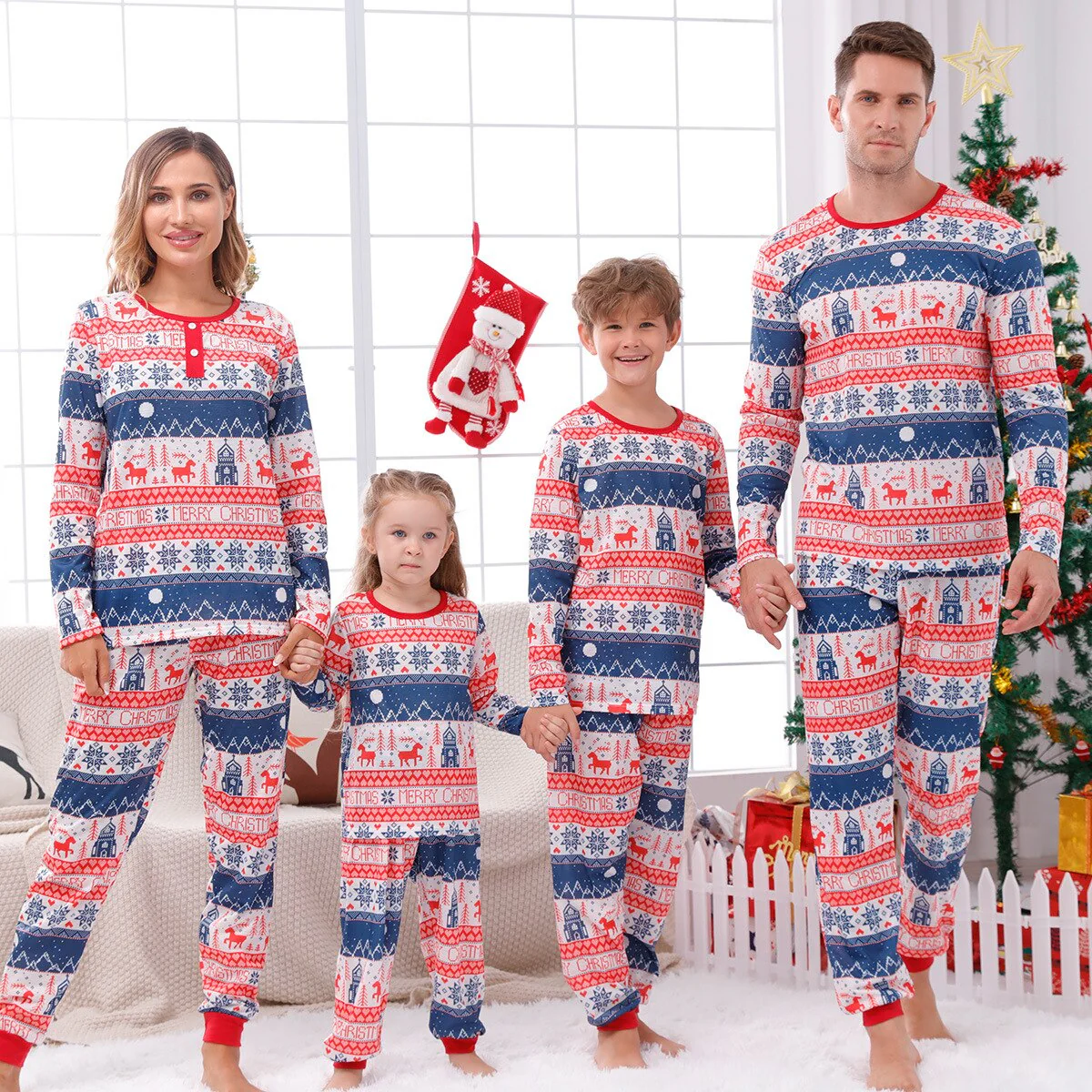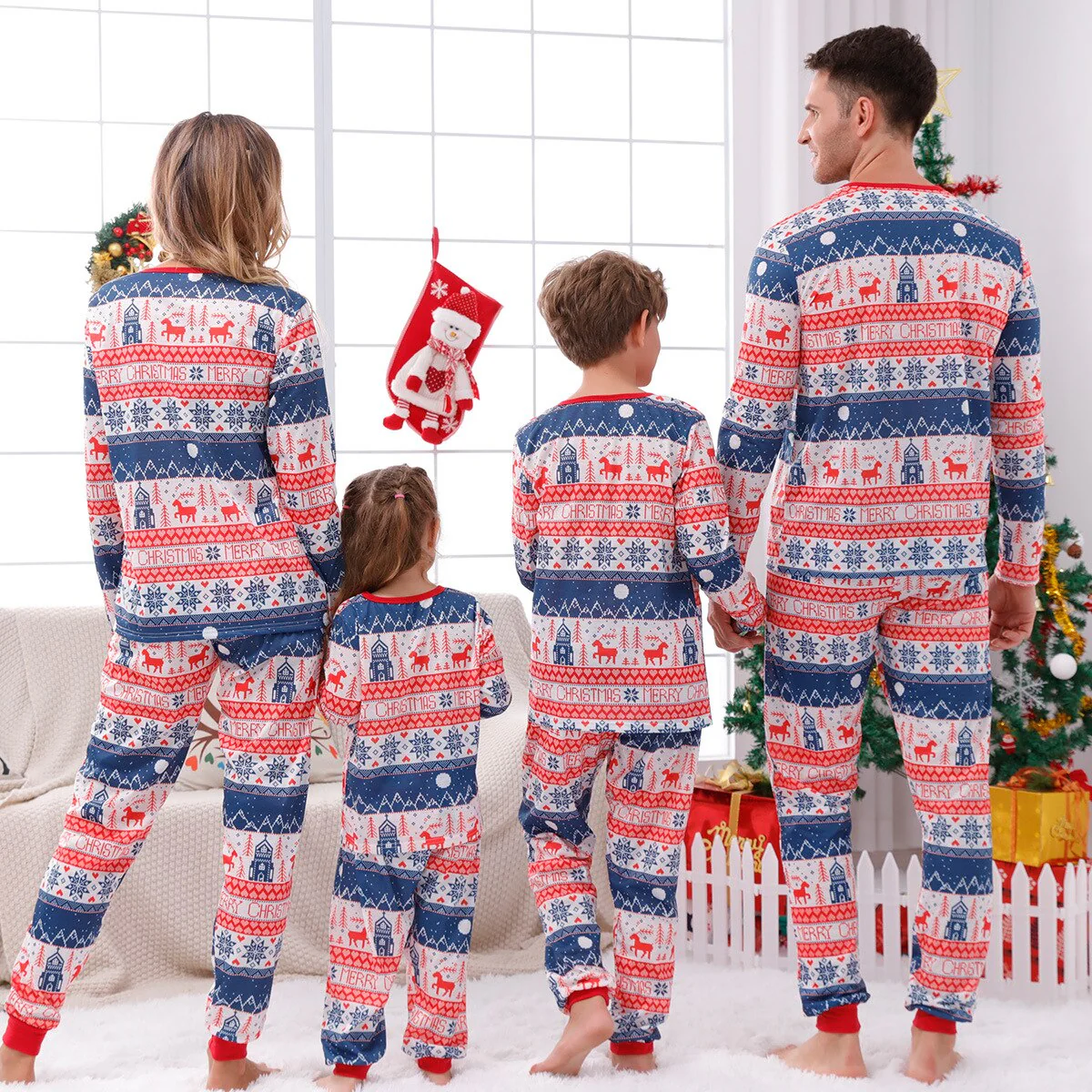 Mode de Noël aux motifs uniques — Un design simple avec un pull à manches longues à imprimé de Noël unique, associé à un pantalon, crée un look charmant. Ce pyjama enchantera toute la famille ; impossible de passer à côté de ces vêtements incroyables.