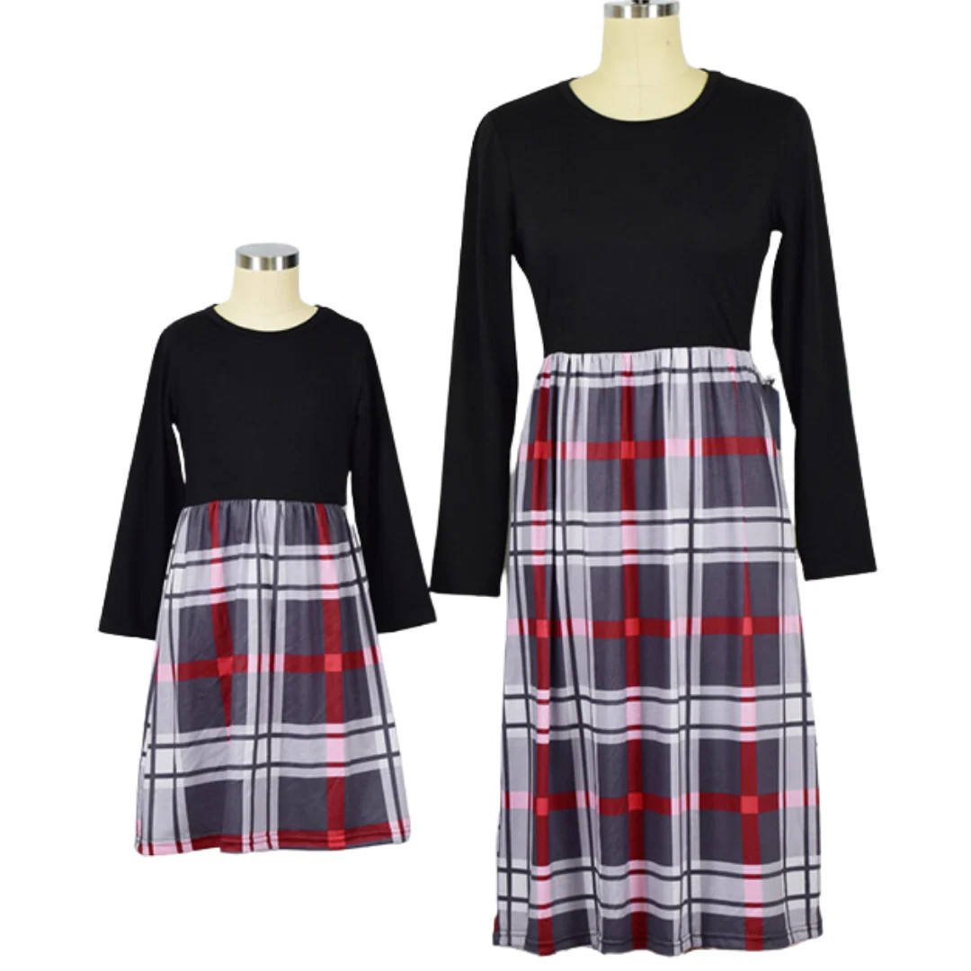 Robe assortie maman et moi avec haut noir et bas à carreaux